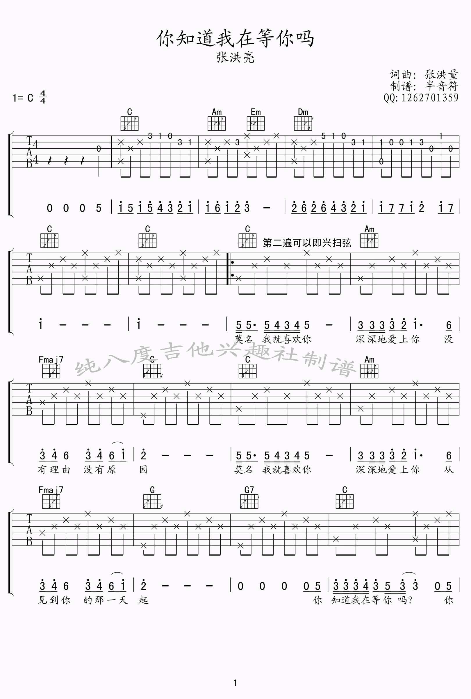 公众号:绵羊乐谱 你知道我在等你吗吉他谱,张洪量的经典老歌,曾一时风靡大街小巷的九零年代情歌金曲。《你知道我在等你吗》六线谱,选用原调C调编配,两张高清弹唱图片谱。 公众号:绵羊乐谱 | 官方QQ群:978773290 不吃独食,学会分享!本文链接:http://www.shaomingyang.com/btb/31923.html 转载请标明出处,尊重原创(๑╹◡╹)ノ。如信息有误或版权疑问,请通过网站底部联系我们会第一时间处理,感谢理解支持(◕ᴗ◕✿)!