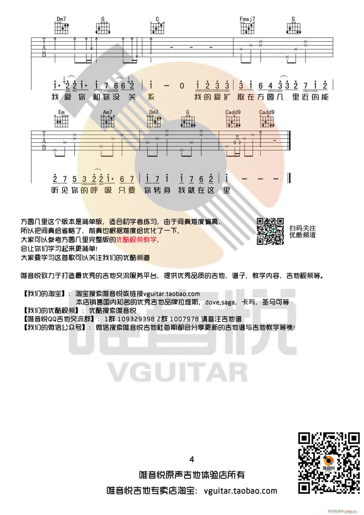 公众号:绵羊乐谱 方圆几里 C调简单版 唯音悦制谱免费弹唱吉他谱_六线谱/词曲:薛之谦 点击: 1000 图片可能经过缩放,手机长按或点开后长按保存,电脑鼠标右键保存. (唯音悦吉他专营店) 公众号:绵羊乐谱 | 官方QQ群:978773290 不吃独食,学会分享!本文链接:http://www.shaomingyang.com/btb/31935.html 转载请标明出处,尊重原创(๑╹◡╹)ノ。如信息有误或版权疑问,请通过网站底部联系我们会第一时间处理,感谢理解支持(◕ᴗ◕✿)!