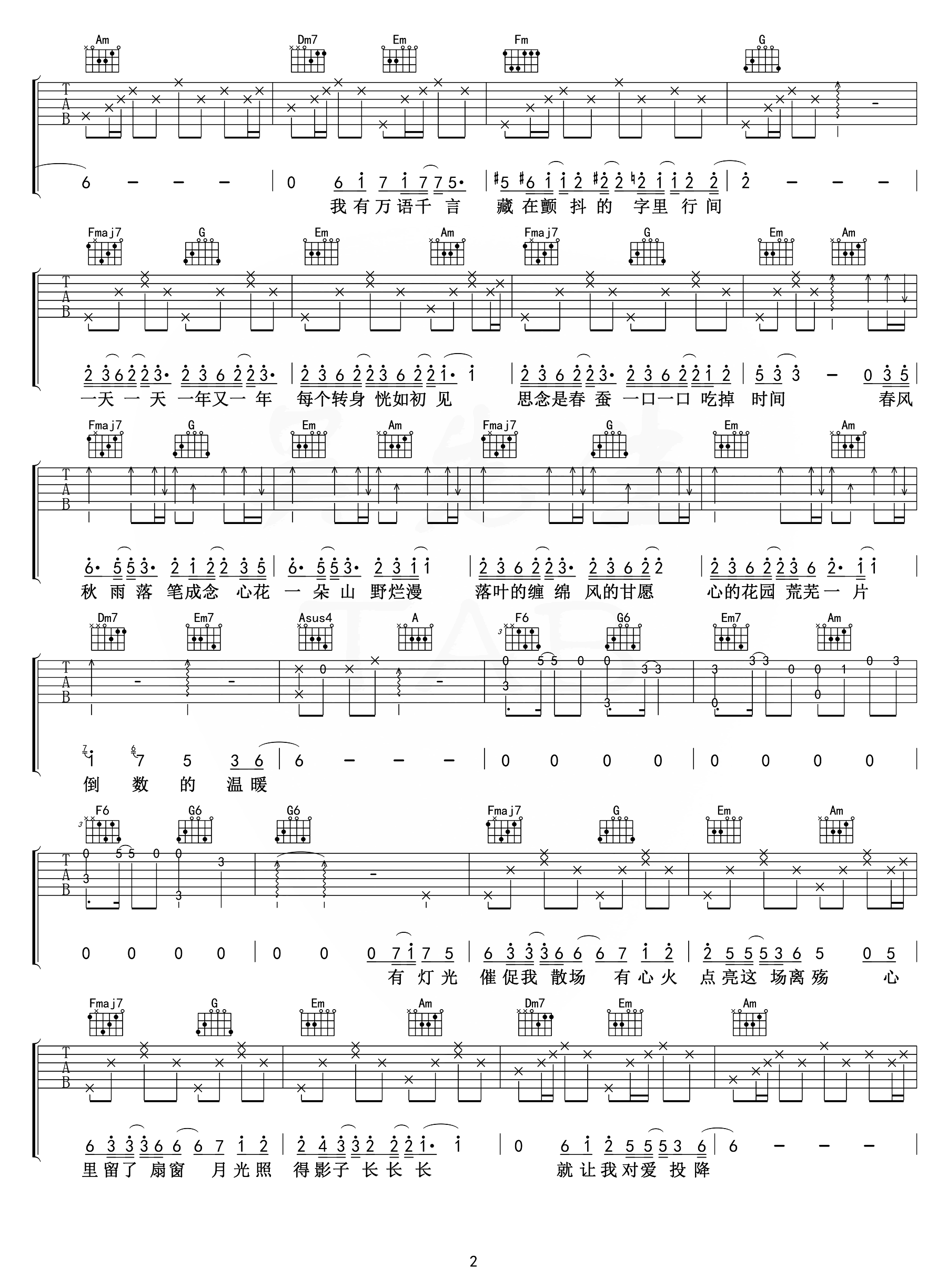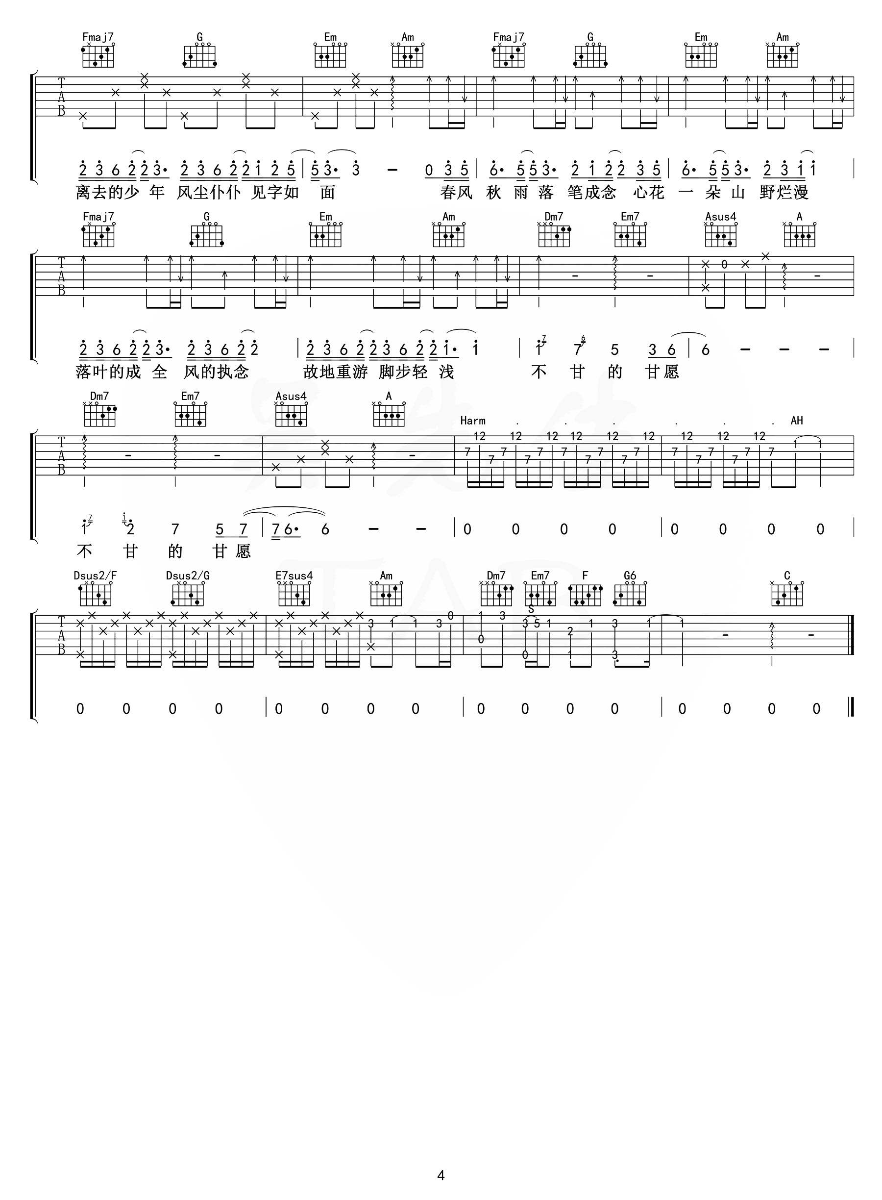 公众号:绵羊乐谱 这首曲谱由吴先生编配制谱,总共4张高清图片谱,整个谱子包含了前奏以及详细的主副歌部分,非常的完整,感兴趣的朋友不要错过这首歌曲,可以先行试听这首歌曲的弹唱音频。 公众号:绵羊乐谱 | 官方QQ群:978773290 不吃独食,学会分享!本文链接:http://www.shaomingyang.com/btb/31997.html 转载请标明出处,尊重原创(๑╹◡╹)ノ。如信息有误或版权疑问,请通过网站底部联系我们会第一时间处理,感谢理解支持(◕ᴗ◕✿)!