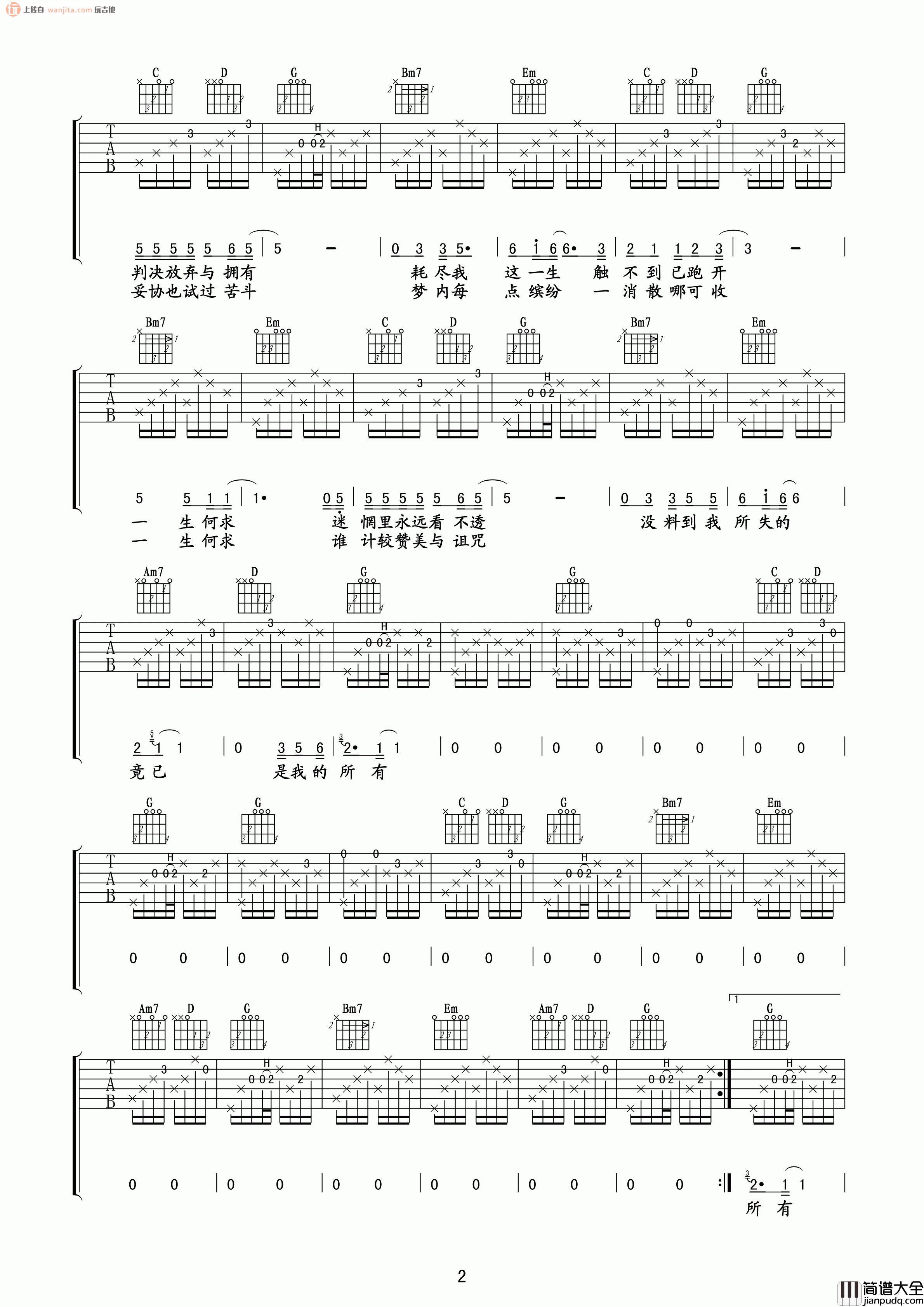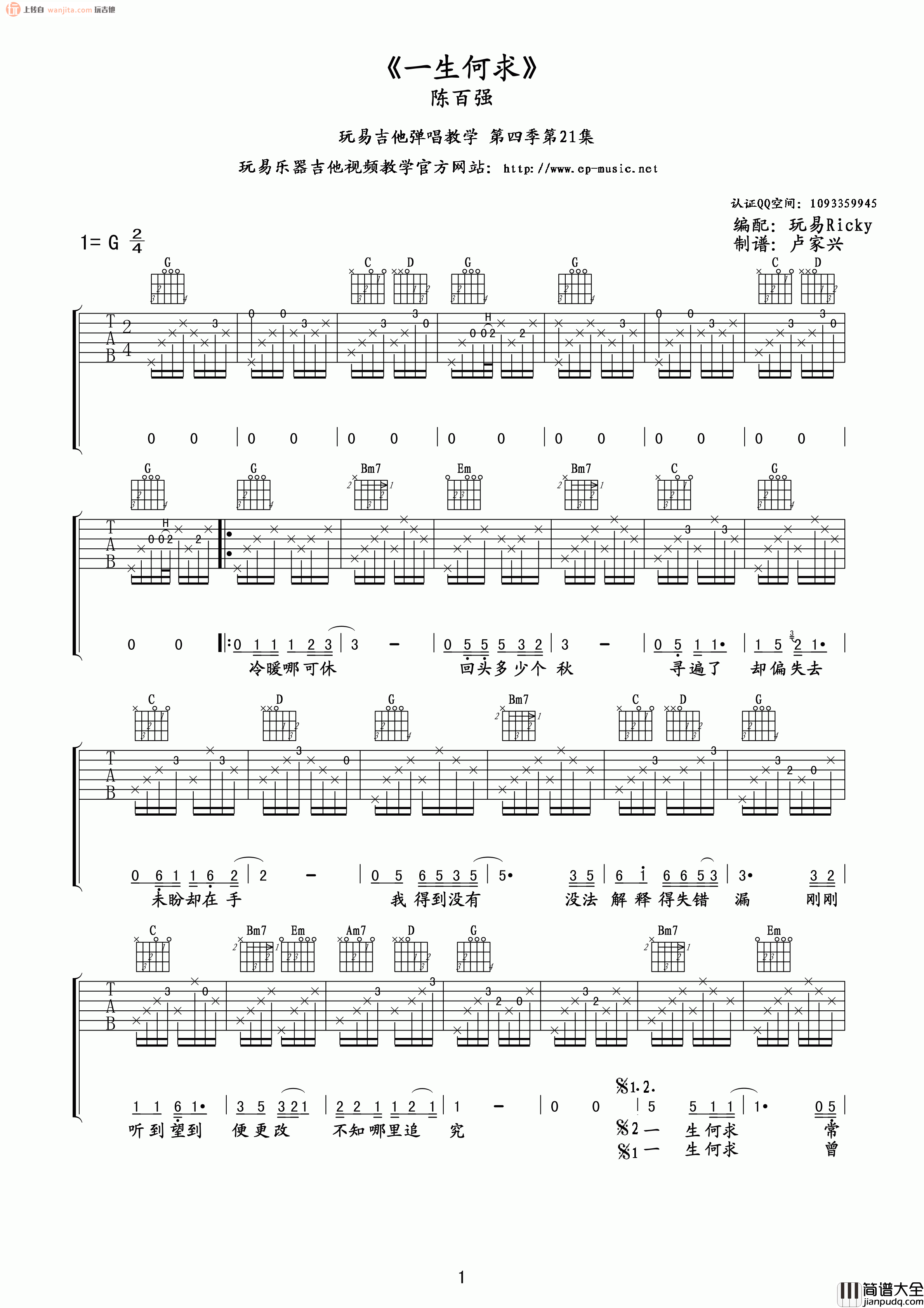 《一生何求》吉他谱,由玩易吉他编配分享,选用G调指法,歌曲包含了完整的前奏,基本上以分解和弦为主要的弹唱节奏,但节拍较快,需要大家花时间稳定掌握。