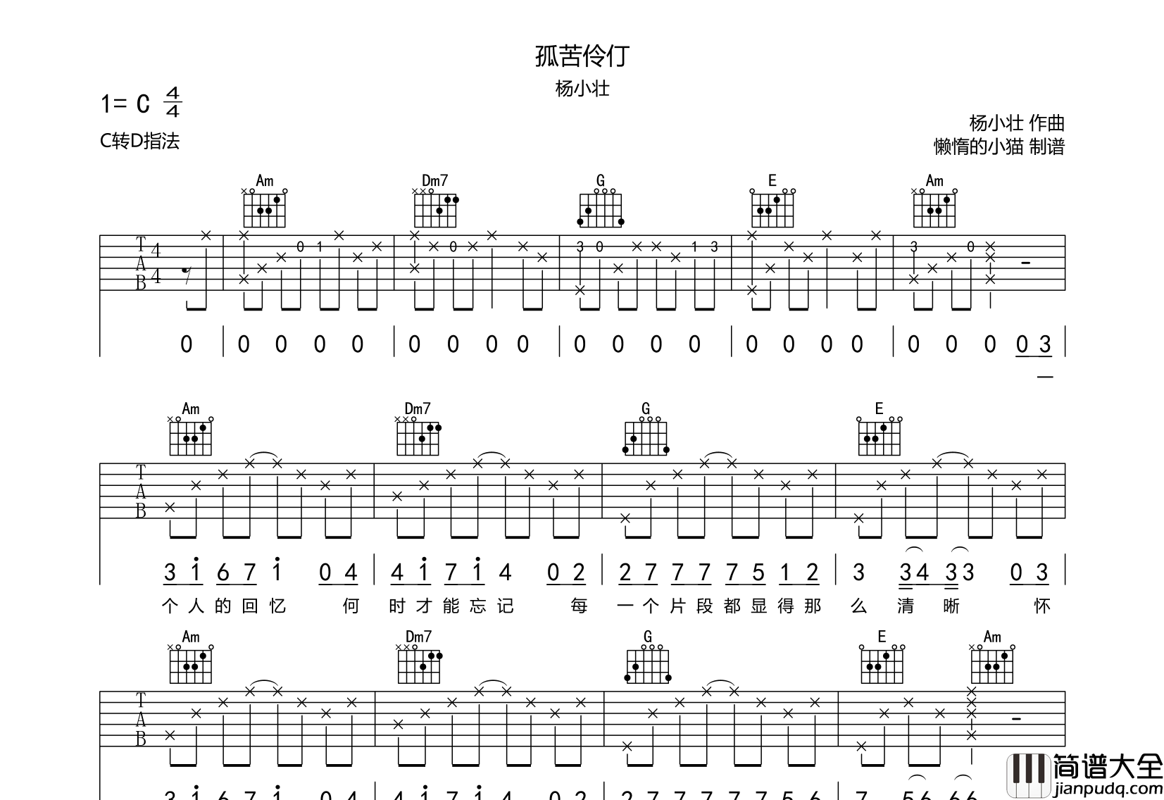公众号:绵羊乐谱 《孤苦伶仃》总共3张高清吐泡泡,原调C调,本曲谱使用C转D指法弹唱,包含完整的前奏,弹唱难度较简单。 公众号:绵羊乐谱 | 官方QQ群:978773290 不吃独食,学会分享!本文链接:http://www.shaomingyang.com/btb/32058.html 转载请标明出处,尊重原创(๑╹◡╹)ノ。如信息有误或版权疑问,请通过网站底部联系我们会第一时间处理,感谢理解支持(◕ᴗ◕✿)!
