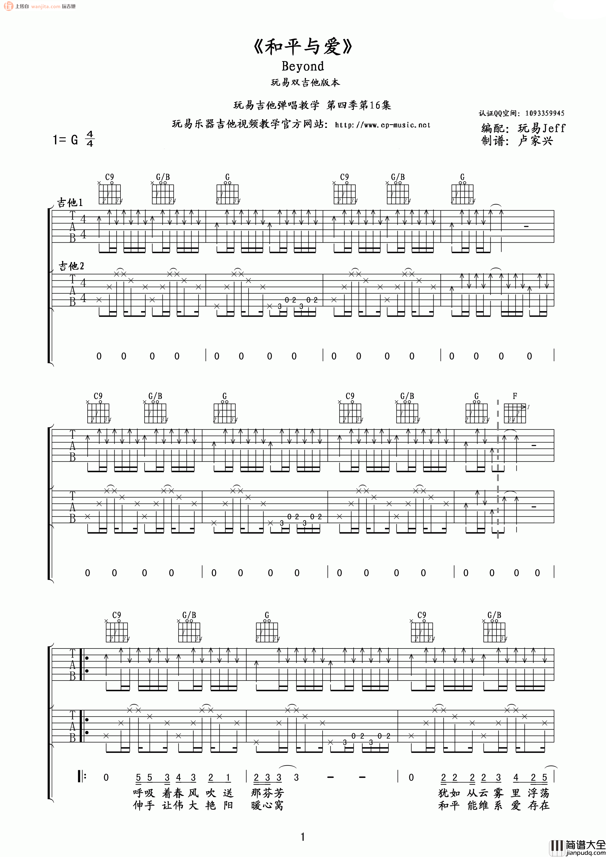 公众号:绵羊乐谱 《和平与爱》吉他弹唱视频教学 公众号:绵羊乐谱 | 官方QQ群:978773290 不吃独食,学会分享!本文链接:http://www.shaomingyang.com/btb/32062.html 转载请标明出处,尊重原创(๑╹◡╹)ノ。如信息有误或版权疑问,请通过网站底部联系我们会第一时间处理,感谢理解支持(◕ᴗ◕✿)!