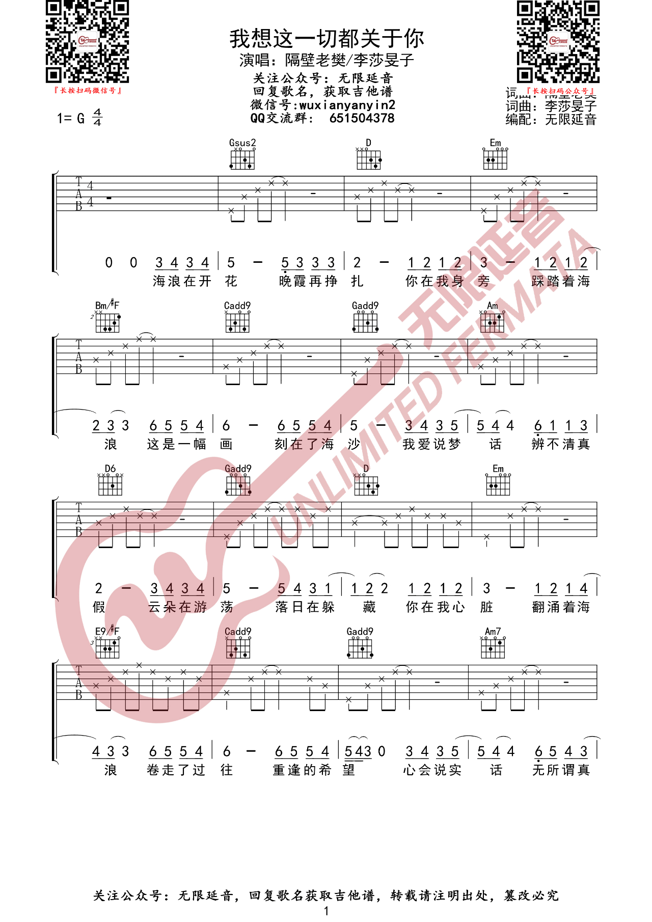 本文题目 我思这十足都合于你吉他谱 隔邻老樊(G调) 吉他图片谱2张 ,本文网址