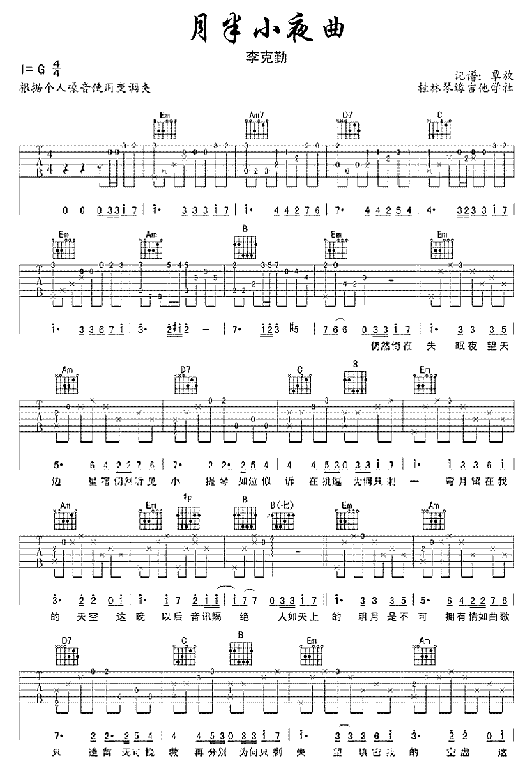 本文题目 《月半小夜曲》 吉他谱 陈慧娴 吉他图片谱4张 ,本文网址