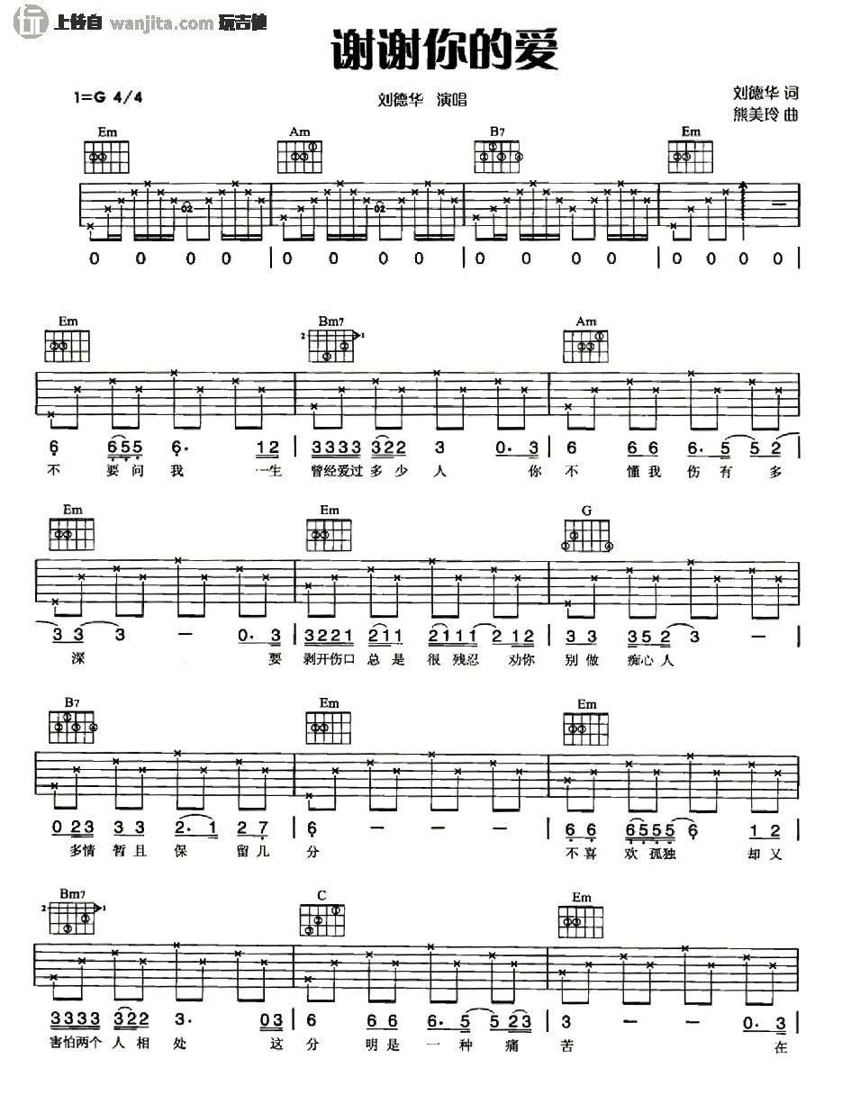 刘德华《谢谢你的爱》吉他谱-图1