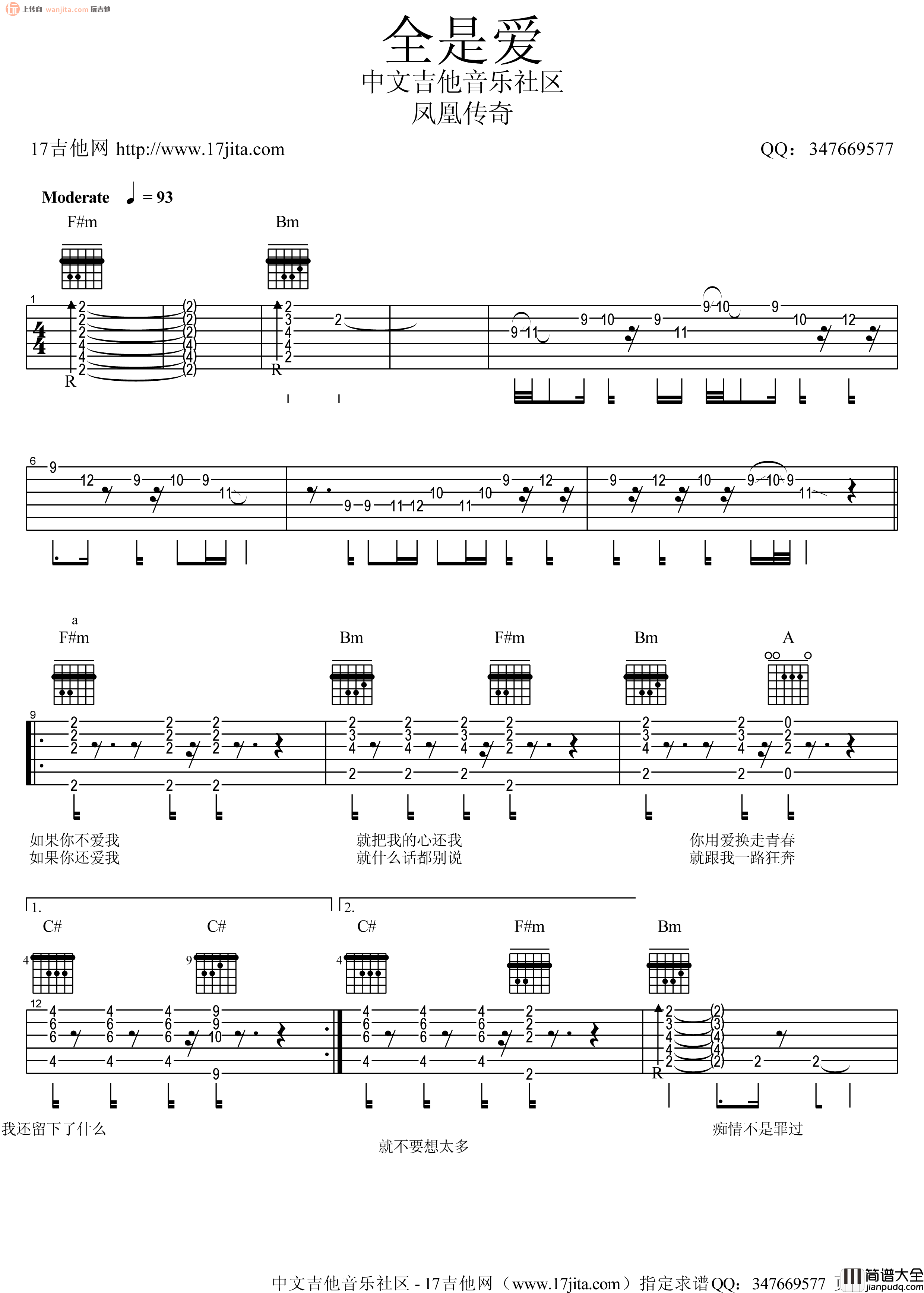 《全是爱》吉他谱,总共4张高清图片谱,弹唱有一定难度,有一定基础的朋友应该可以更好的上手。