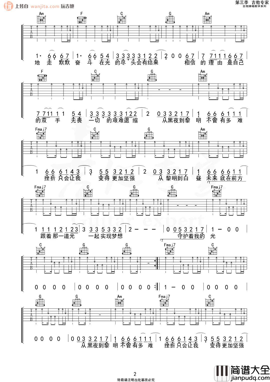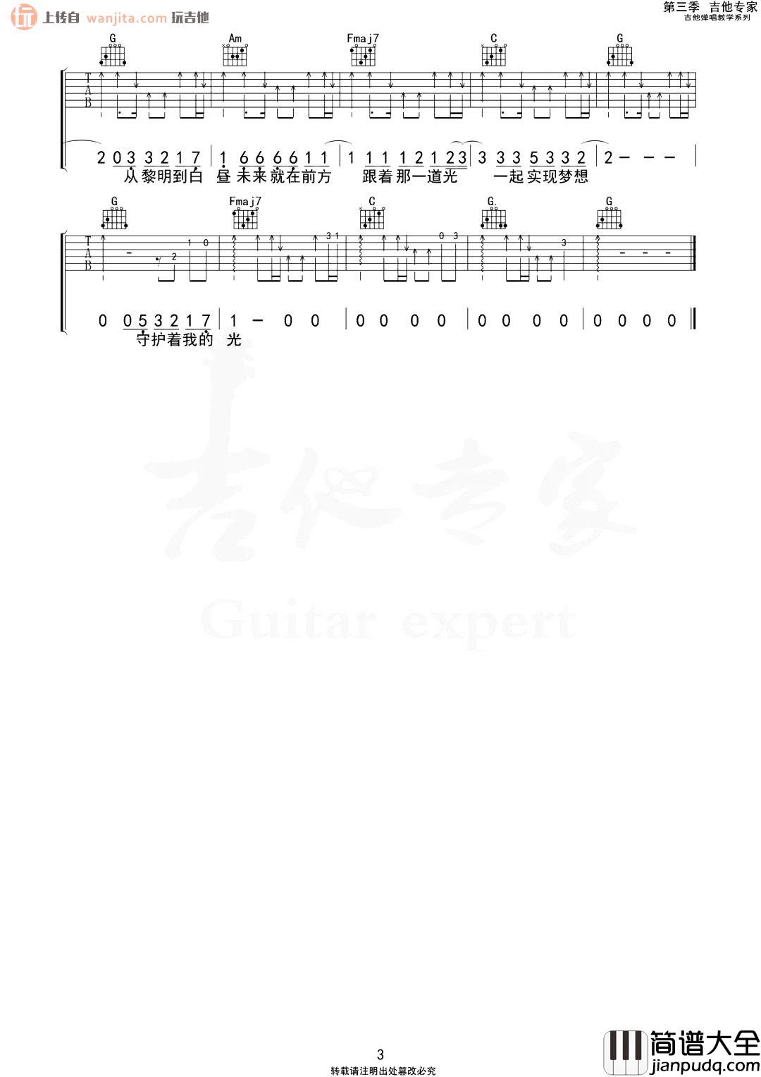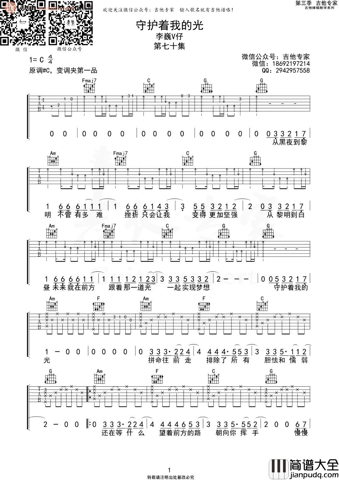 公众号:绵羊乐谱 《守护着我的光》吉他弹唱谱,总共3张高清图片谱例,由吉他专家制谱分享,原调#C,选用C调,变调夹夹1品。比较基础的和弦,容易学习的节奏,十分适合新手学习的一张谱子,没有太多的难度,一首励志的歌曲记得收藏。 公众号:绵羊乐谱 | 官方QQ群:978773290 不吃独食,学会分享!本文链接:http://www.shaomingyang.com/btb/32167.html 转载请标明出处,尊重原创(๑╹◡╹)ノ。如信息有误或版权疑问,请通过网站底部联系我们会第一时间处理,感谢理解支持(◕ᴗ◕✿)!