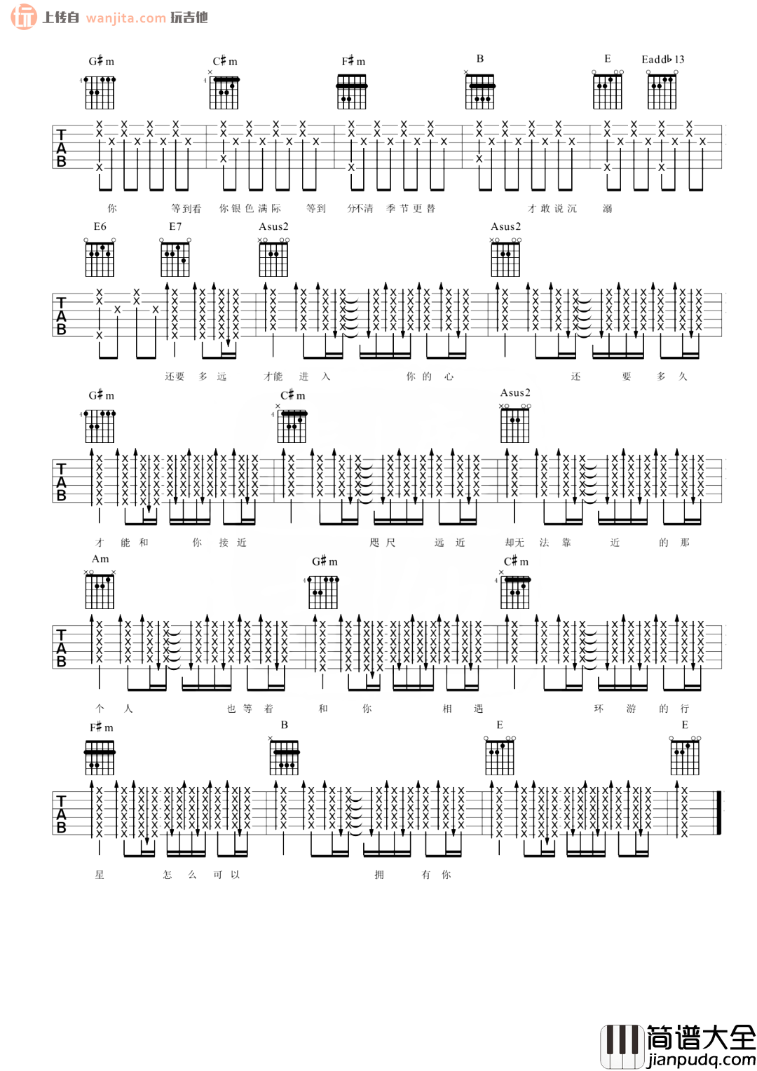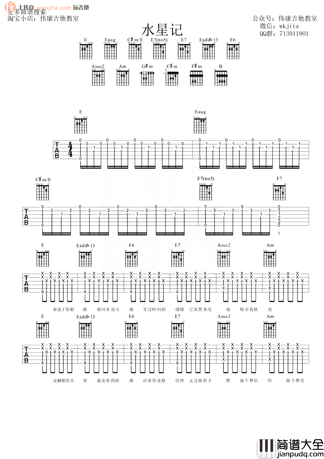 《水星记》吉他谱,不使用变调夹。节拍较快,十三种和弦的使用让这首歌曲比较难以学习,不推荐新手学习,这首深情的歌曲太适合吉他弹唱了,过分的深情让人不觉得带入到歌曲情绪当中。