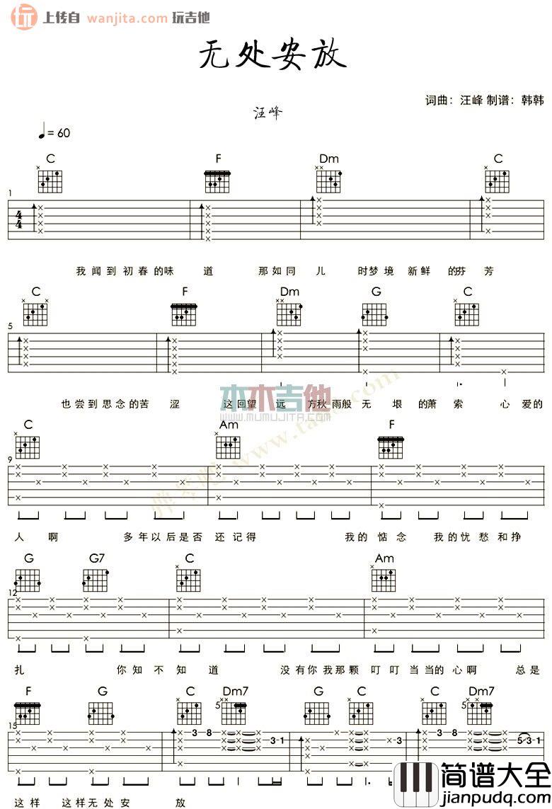 公众号:绵羊乐谱 无处安放吉他谱,总共2张高清图片谱,原调为C调,速度每分钟60BPM,不使用变调夹,弹唱难度初级。 公众号:绵羊乐谱 | 官方QQ群:978773290 不吃独食,学会分享!本文链接:http://www.shaomingyang.com/btb/32179.html 转载请标明出处,尊重原创(๑╹◡╹)ノ。如信息有误或版权疑问,请通过网站底部联系我们会第一时间处理,感谢理解支持(◕ᴗ◕✿)!