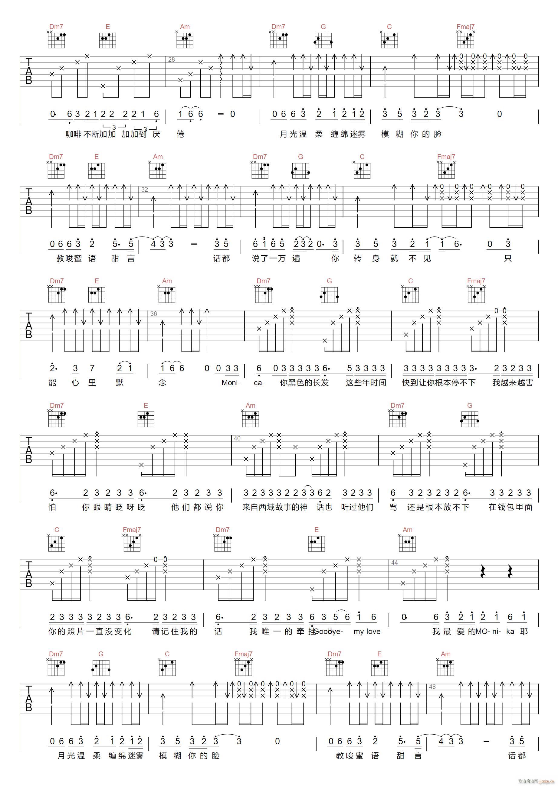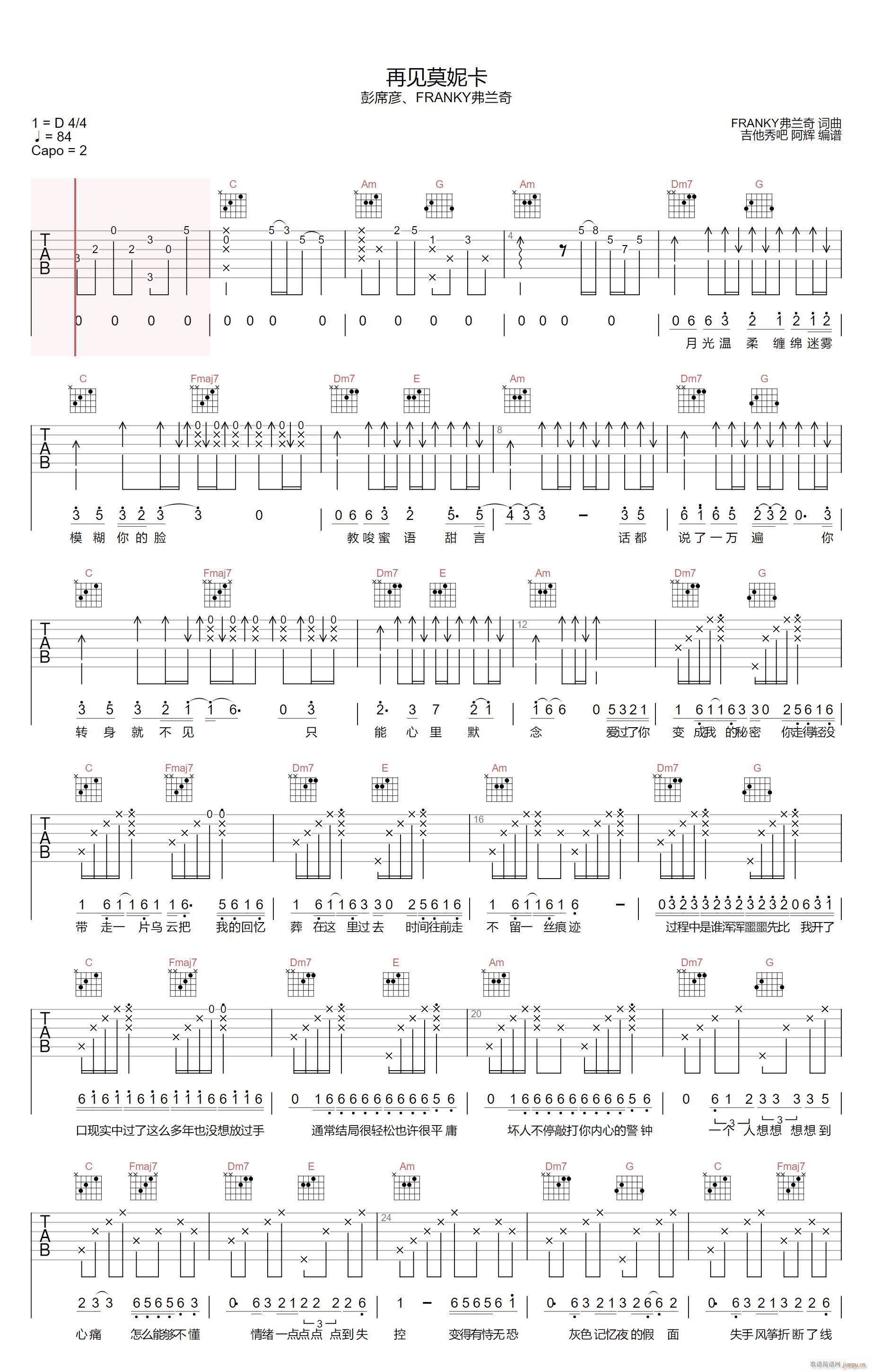 公众号:绵羊乐谱 再见莫妮卡免费弹唱吉他谱_六线谱/词曲:彭席彦 点击: 1000 图片可能经过缩放,手机长按或点开后长按保存,电脑鼠标右键保存. (阿辉) 公众号:绵羊乐谱 | 官方QQ群:978773290 不吃独食,学会分享!本文链接:http://www.shaomingyang.com/btb/32230.html 转载请标明出处,尊重原创(๑╹◡╹)ノ。如信息有误或版权疑问,请通过网站底部联系我们会第一时间处理,感谢理解支持(◕ᴗ◕✿)!