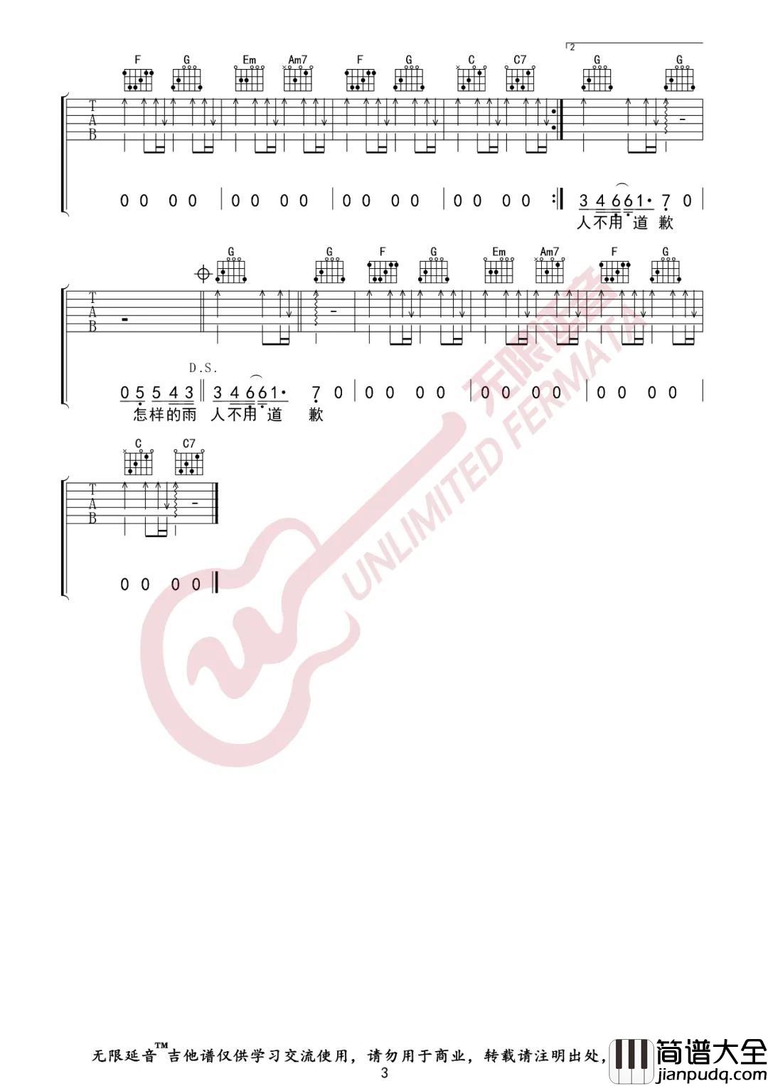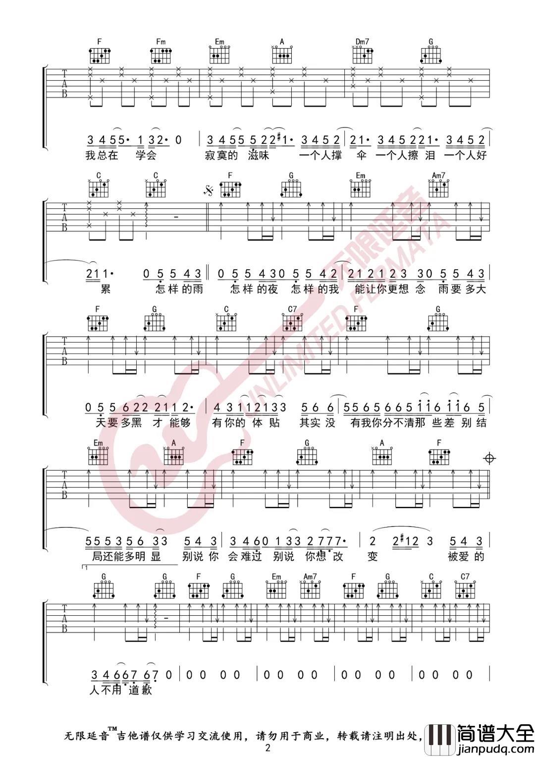 《下雨天》吉他谱_女生简单版弹唱视频