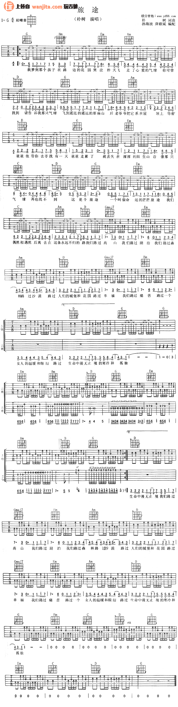 朴树《旅途》吉他谱-图1