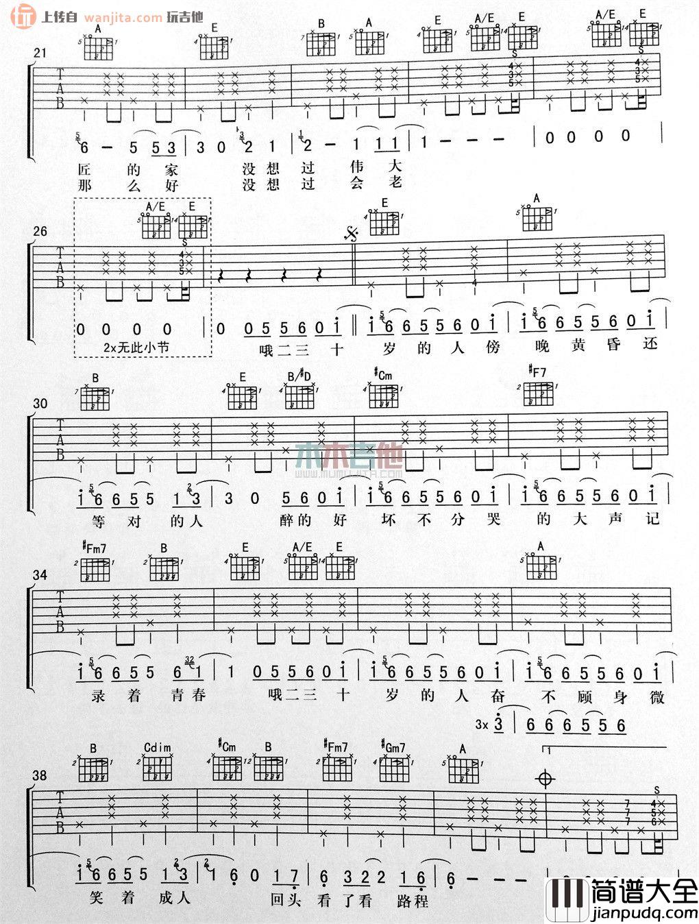 《二三十》吉他谱原调F调,变调夹夹1品,用E调指法弹奏,杨鑫编配制谱。这张感触颇深的歌曲谱子并不像想象中的那么难,大家学习的时候要注意右手的节奏型的转化,这算是比较难的一部分了。这首歌也比较适合新手学习。