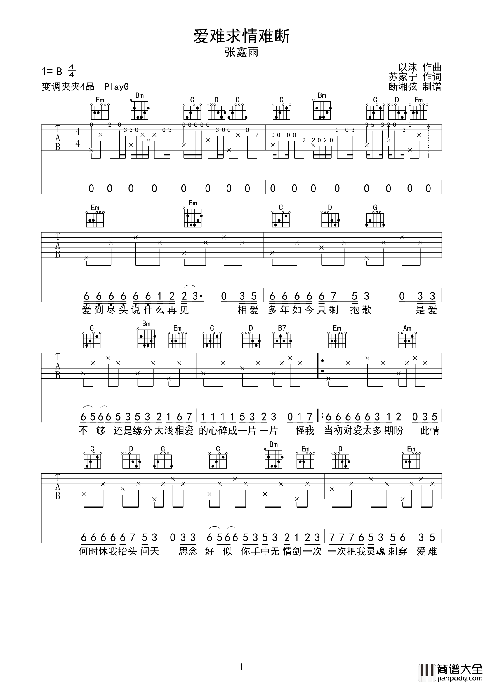 公众号:绵羊乐谱 《爱难求情难断》总共3张高清图片谱,本谱为G调编配,夹4品弹唱。 公众号:绵羊乐谱 | 官方QQ群:978773290 不吃独食,学会分享!本文链接:http://www.shaomingyang.com/btb/32426.html 转载请标明出处,尊重原创(๑╹◡╹)ノ。如信息有误或版权疑问,请通过网站底部联系我们会第一时间处理,感谢理解支持(◕ᴗ◕✿)!
