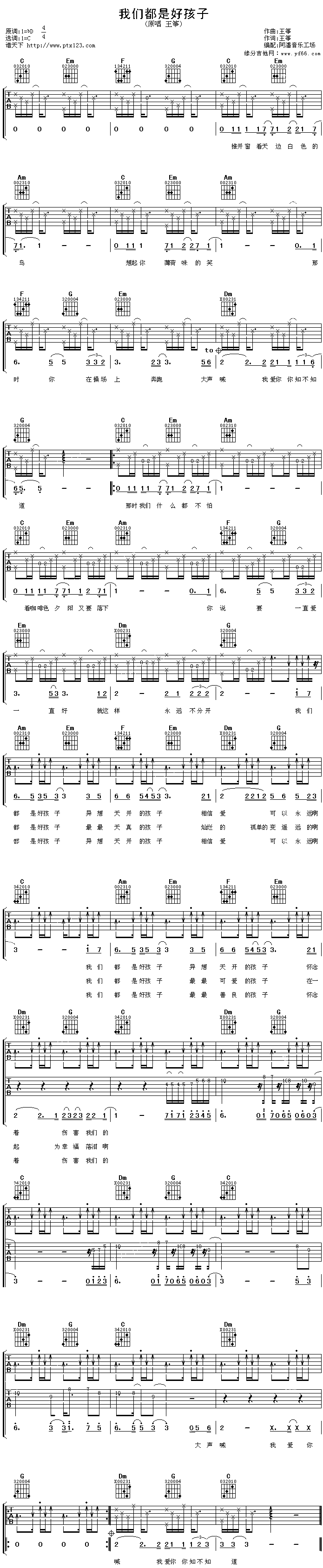 公众号:绵羊乐谱 我们都是好孩子免费弹唱吉他谱_六线谱:王筝 点击: 1000 图片可能经过缩放,手机长按或点开后长按保存,电脑鼠标右键保存. (网络) 公众号:绵羊乐谱 | 官方QQ群:978773290 不吃独食,学会分享!本文链接:http://www.shaomingyang.com/btb/32441.html 转载请标明出处,尊重原创(๑╹◡╹)ノ。如信息有误或版权疑问,请通过网站底部联系我们会第一时间处理,感谢理解支持(◕ᴗ◕✿)!