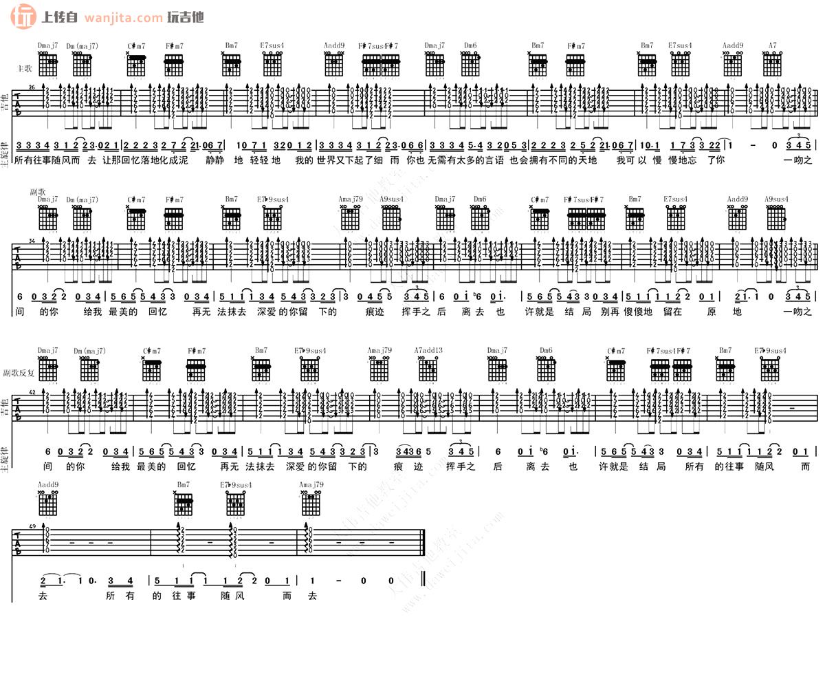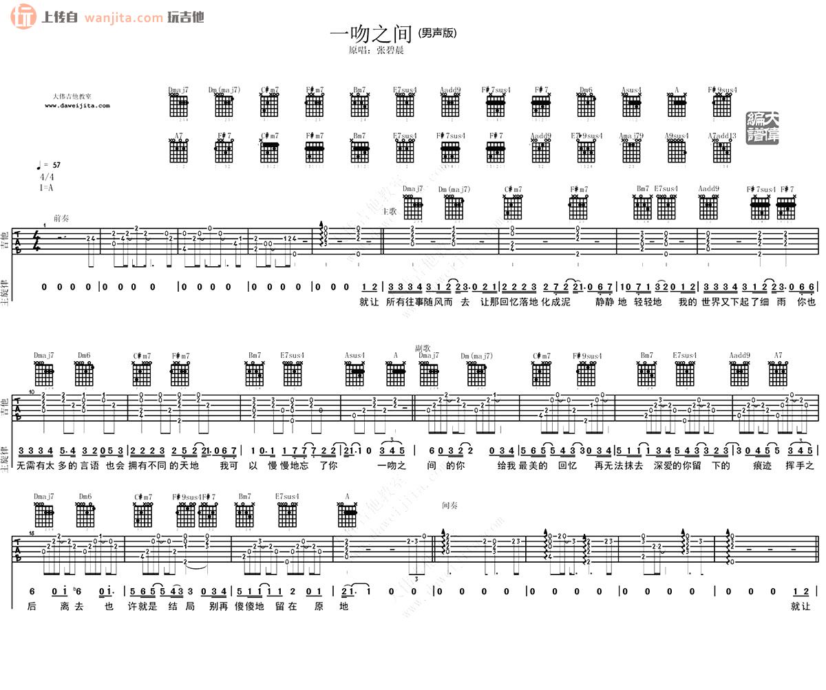 本文题目 一吻之间吉他谱 张碧晨(A调) 吉他图片谱2张 ,本文网址