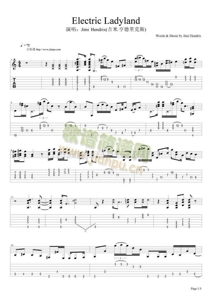 公众号:绵羊乐谱 Electric Ladyland免费弹唱吉他谱_六线谱:JimiHendrix吉米.亨德里克斯 点击: 1000 图片可能经过缩放,手机长按或点开后长按保存,电脑鼠标右键保存. (乐友qiu5007传谱) 公众号:绵羊乐谱 | 官方QQ群:978773290 不吃独食,学会分享!本文链接:http://www.shaomingyang.com/btb/32553.html 转载请标明出处,尊重原创(๑╹◡╹)ノ。如信息有误或版权疑问,请通过网站底部联系我们会第一时间处理,感谢理解支持(◕ᴗ◕✿)!