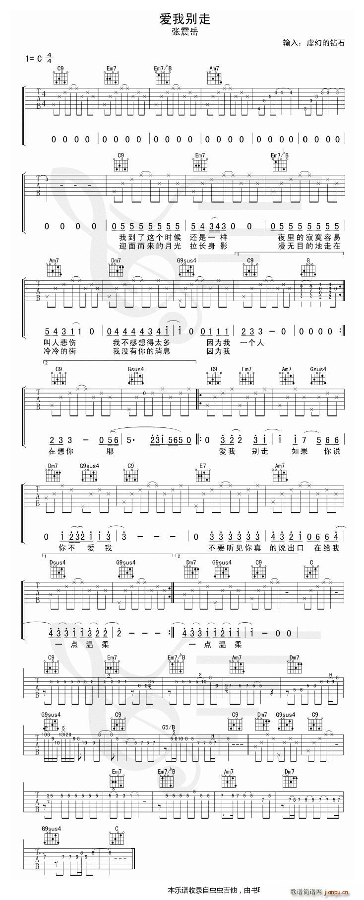 公众号:绵羊乐谱 爱我别走(自制、清晰)免费弹唱吉他谱_六线谱/词曲:张震岳 点击: 1000 图片可能经过缩放,手机长按或点开后长按保存,电脑鼠标右键保存. (网络) 公众号:绵羊乐谱 | 官方QQ群:978773290 不吃独食,学会分享!本文链接:http://www.shaomingyang.com/btb/32557.html 转载请标明出处,尊重原创(๑╹◡╹)ノ。如信息有误或版权疑问,请通过网站底部联系我们会第一时间处理,感谢理解支持(◕ᴗ◕✿)!