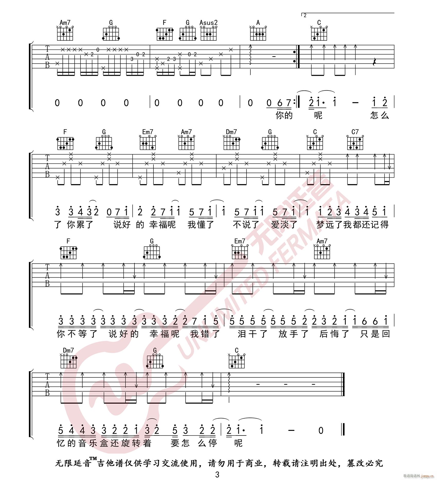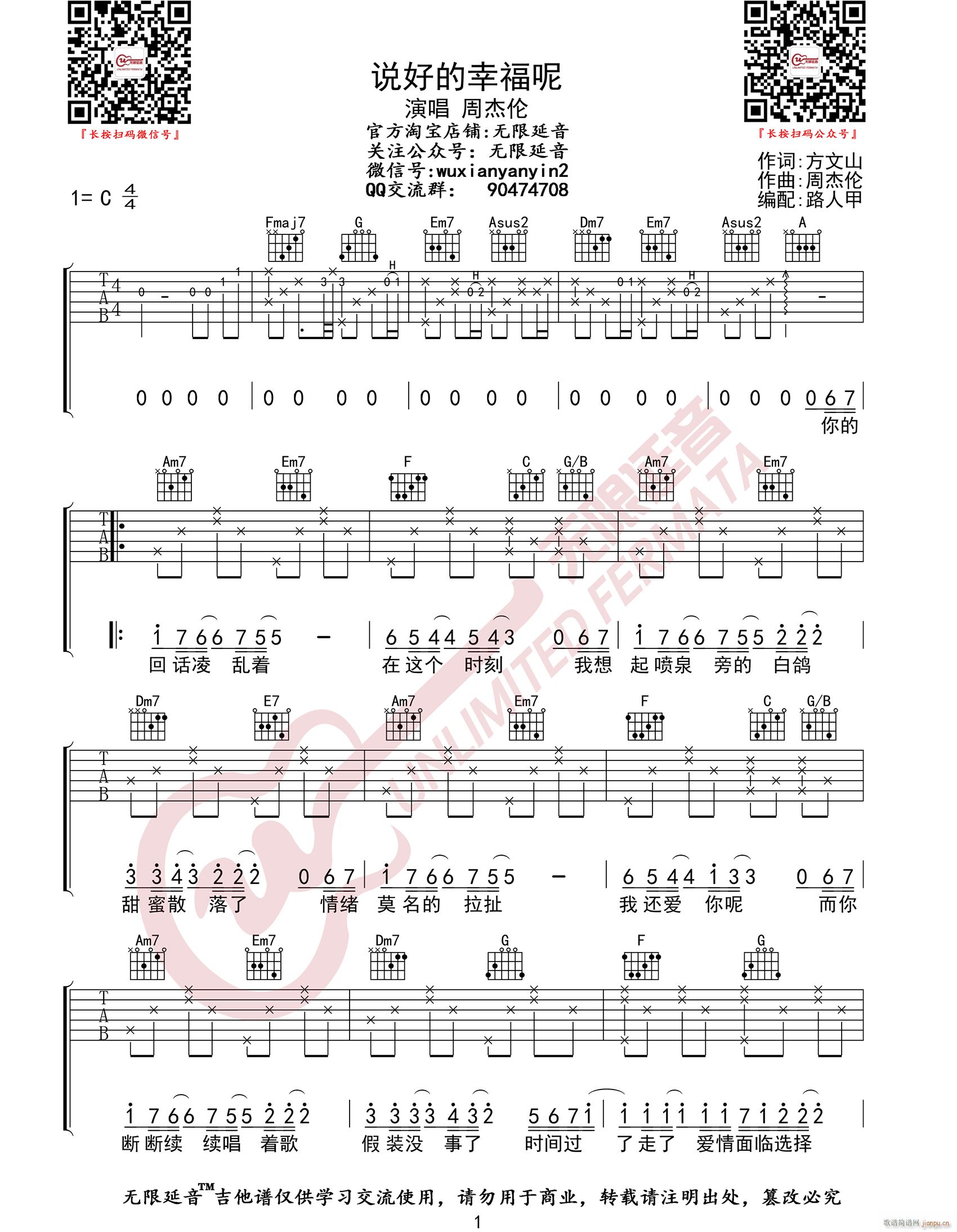 公众号:绵羊乐谱 说好的幸福呢 ( C调原版编配) 免费弹唱吉他谱_六线谱/词曲:周杰伦 点击: (无限延音) 公众号:绵羊乐谱 | 官方QQ群:978773290 不吃独食,学会分享!本文链接:http://www.shaomingyang.com/btb/32624.html 转载请标明出处,尊重原创(๑╹◡╹)ノ。如信息有误或版权疑问,请通过网站底部联系我们会第一时间处理,感谢理解支持(◕ᴗ◕✿)!