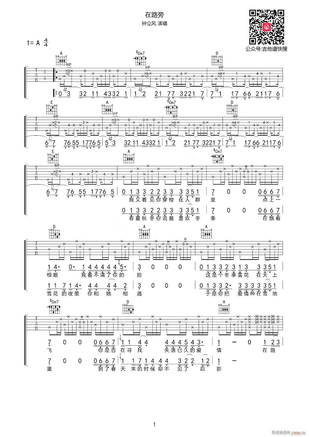 公众号:绵羊乐谱 在路旁 ( A调原版编配) 免费弹唱吉他谱_六线谱/词曲:钟立风 点击: (网络) 公众号:绵羊乐谱 | 官方QQ群:978773290 不吃独食,学会分享!本文链接:http://www.shaomingyang.com/btb/32638.html 转载请标明出处,尊重原创(๑╹◡╹)ノ。如信息有误或版权疑问,请通过网站底部联系我们会第一时间处理,感谢理解支持(◕ᴗ◕✿)!