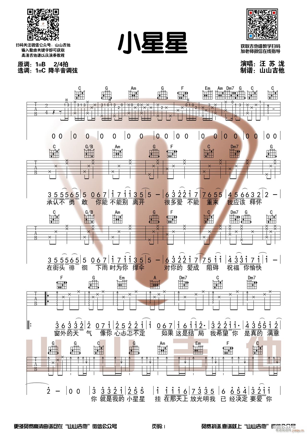 公众号:绵羊乐谱 小星星 ( C调指法原版编配) 免费弹唱吉他谱_六线谱/词曲:汪苏泷 点击: (山山吉他) 公众号:绵羊乐谱 | 官方QQ群:978773290 不吃独食,学会分享!本文链接:http://www.shaomingyang.com/btb/32662.html 转载请标明出处,尊重原创(๑╹◡╹)ノ。如信息有误或版权疑问,请通过网站底部联系我们会第一时间处理,感谢理解支持(◕ᴗ◕✿)!