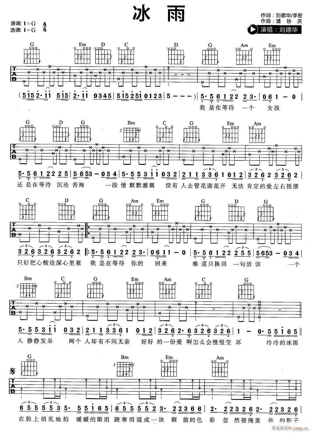 公众号:绵羊乐谱 冰雨 ( G调指法简单版编配) 免费弹唱吉他谱_六线谱/词曲:刘德华 点击: (网络) 公众号:绵羊乐谱 | 官方QQ群:978773290 不吃独食,学会分享!本文链接:http://www.shaomingyang.com/btb/32677.html 转载请标明出处,尊重原创(๑╹◡╹)ノ。如信息有误或版权疑问,请通过网站底部联系我们会第一时间处理,感谢理解支持(◕ᴗ◕✿)!