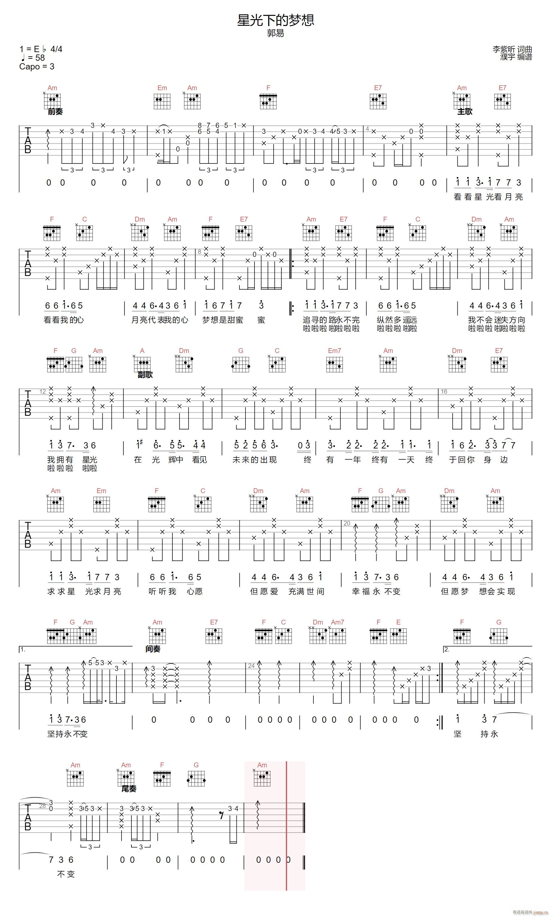 公众号:绵羊乐谱 星光下的梦想 ( C调原版编配) 免费弹唱吉他谱_六线谱/词曲:郭易 点击: (濮宇) 公众号:绵羊乐谱 | 官方QQ群:978773290 不吃独食,学会分享!本文链接:http://www.shaomingyang.com/btb/32692.html 转载请标明出处,尊重原创(๑╹◡╹)ノ。如信息有误或版权疑问,请通过网站底部联系我们会第一时间处理,感谢理解支持(◕ᴗ◕✿)!