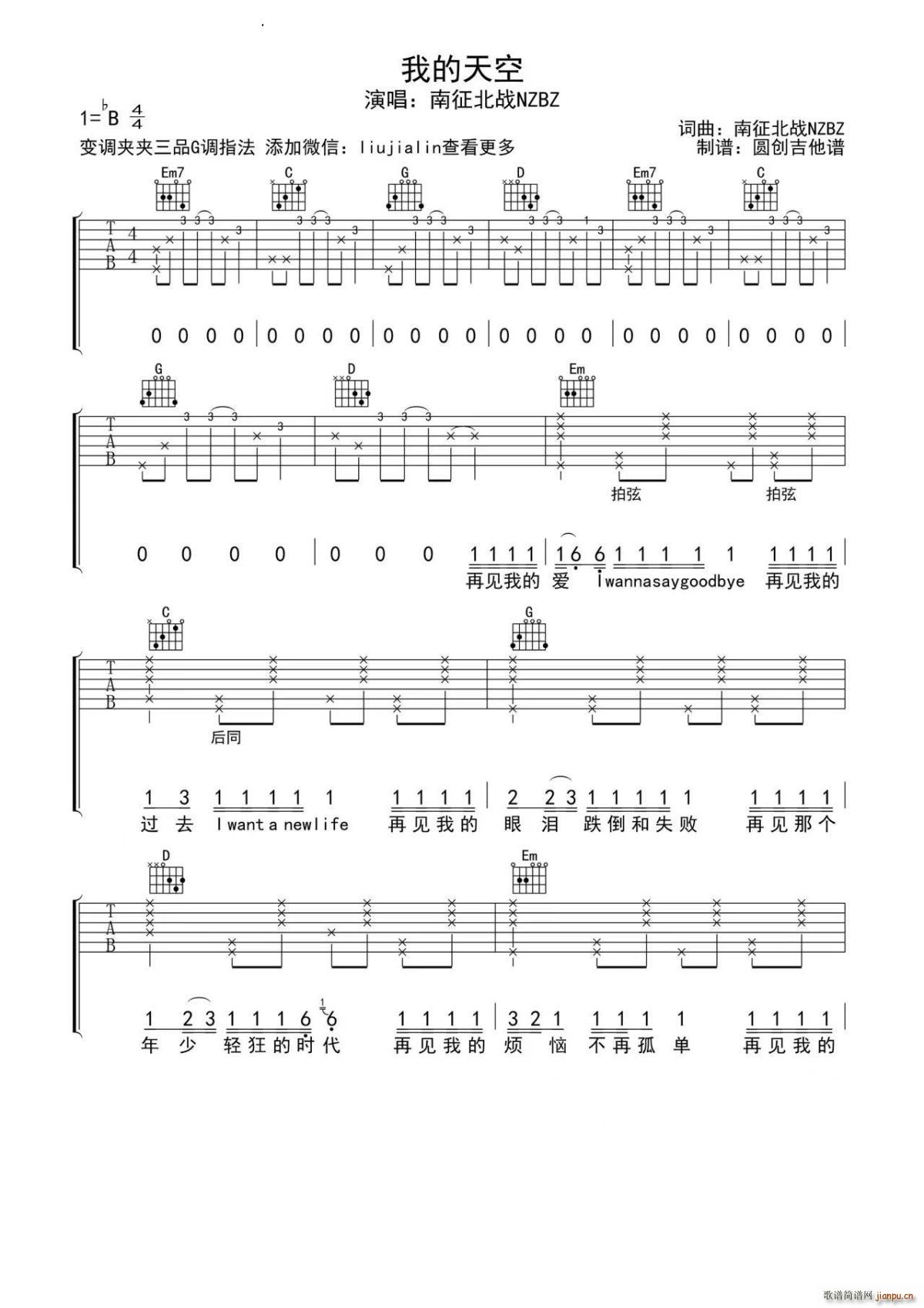 公众号:绵羊乐谱 我的天空 -C调 免费弹唱吉他谱_六线谱/词曲:南征北战NZBZ 点击: (吉他谱) 公众号:绵羊乐谱 | 官方QQ群:978773290 不吃独食,学会分享!本文链接:http://www.shaomingyang.com/btb/32694.html 转载请标明出处,尊重原创(๑╹◡╹)ノ。如信息有误或版权疑问,请通过网站底部联系我们会第一时间处理,感谢理解支持(◕ᴗ◕✿)!
