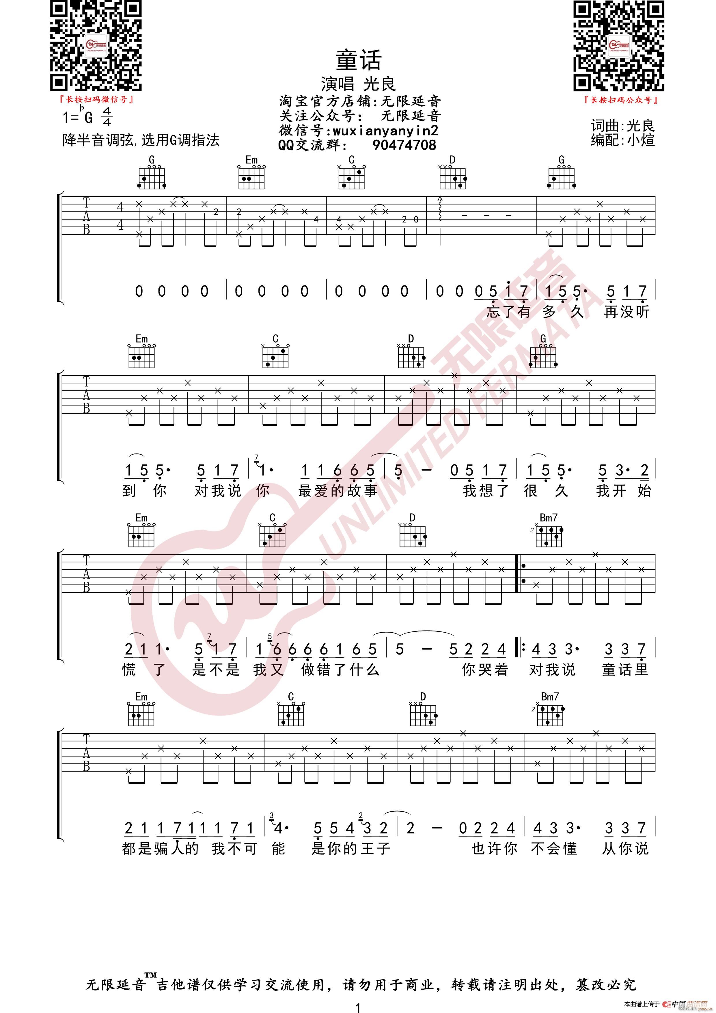 公众号:绵羊乐谱 光良 童话 (无限延音编配) 免费弹唱吉他谱_六线谱/词曲: 点击: (网络) 公众号:绵羊乐谱 | 官方QQ群:978773290 不吃独食,学会分享!本文链接:http://www.shaomingyang.com/btb/32695.html 转载请标明出处,尊重原创(๑╹◡╹)ノ。如信息有误或版权疑问,请通过网站底部联系我们会第一时间处理,感谢理解支持(◕ᴗ◕✿)!
