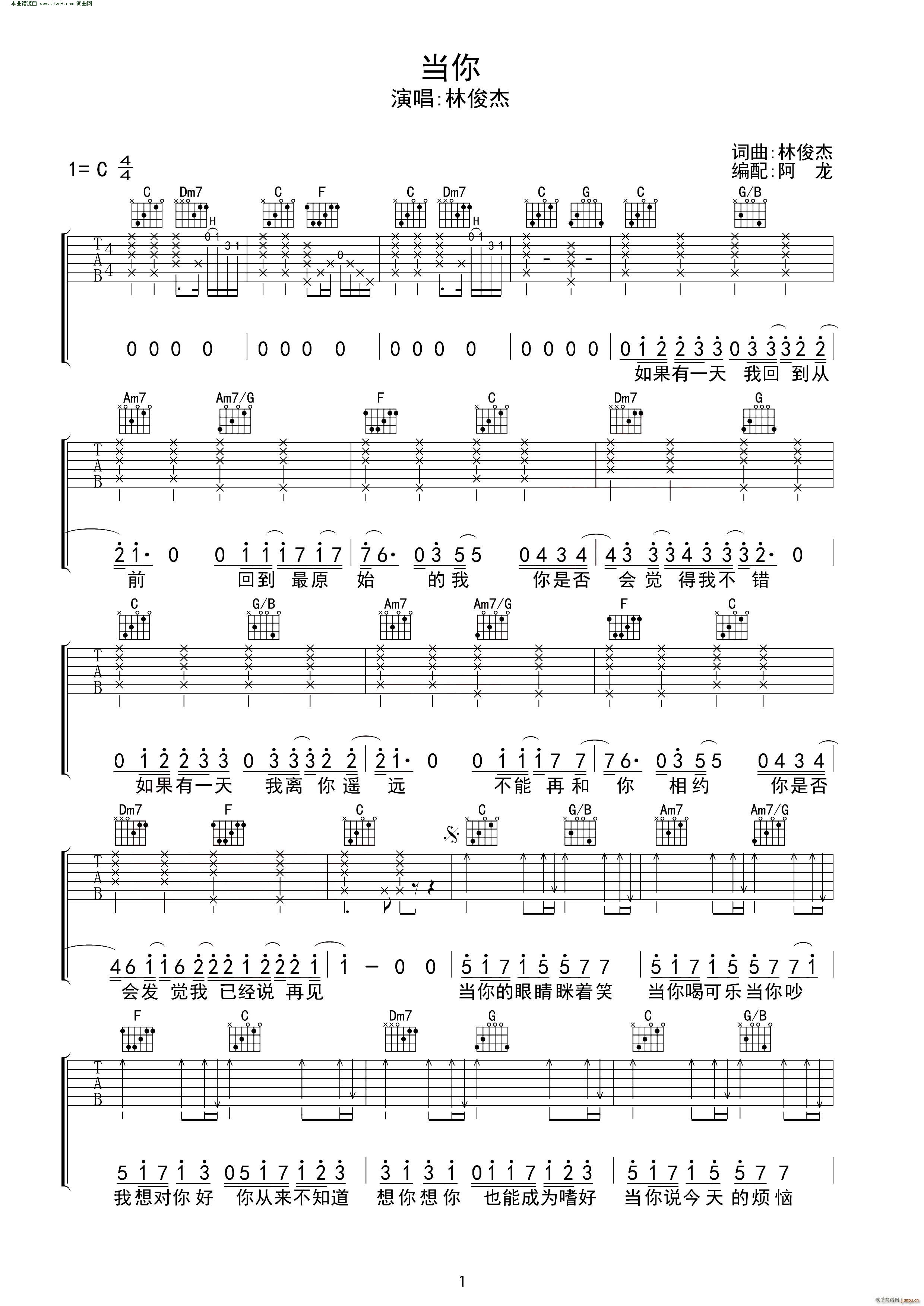 公众号:绵羊乐谱 当你( 编配 )免费弹唱吉他谱_六线谱/词曲:林俊杰 点击: 1000 图片可能经过缩放,手机长按或点开后长按保存,电脑鼠标右键保存. (无限延音) 公众号:绵羊乐谱 | 官方QQ群:978773290 不吃独食,学会分享!本文链接:http://www.shaomingyang.com/btb/32697.html 转载请标明出处,尊重原创(๑╹◡╹)ノ。如信息有误或版权疑问,请通过网站底部联系我们会第一时间处理,感谢理解支持(◕ᴗ◕✿)!