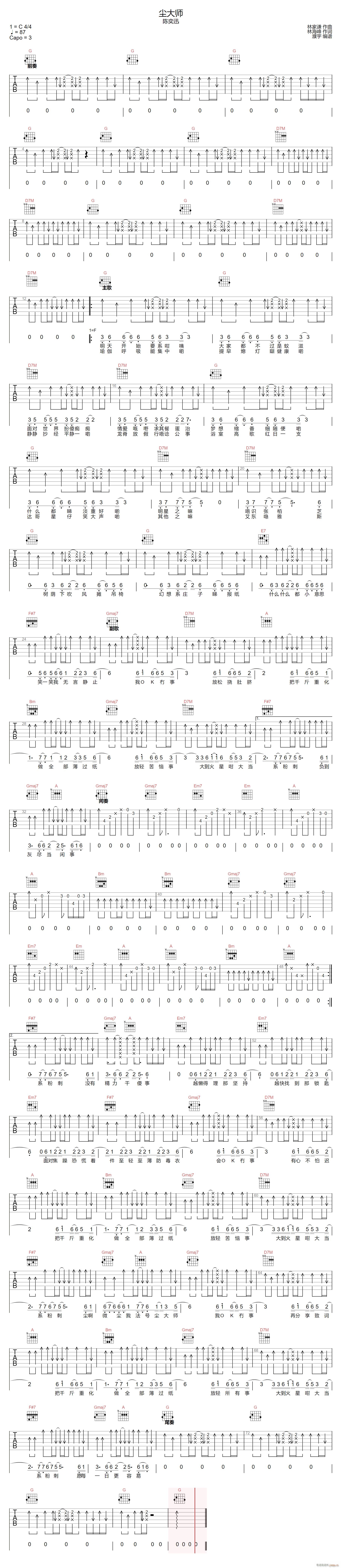公众号:绵羊乐谱 尘大师 ( A调指法原版编配) 免费弹唱吉他谱_六线谱/词曲:陈奕迅 点击: (濮宇) 公众号:绵羊乐谱 | 官方QQ群:978773290 不吃独食,学会分享!本文链接:http://www.shaomingyang.com/btb/32699.html 转载请标明出处,尊重原创(๑╹◡╹)ノ。如信息有误或版权疑问,请通过网站底部联系我们会第一时间处理,感谢理解支持(◕ᴗ◕✿)!