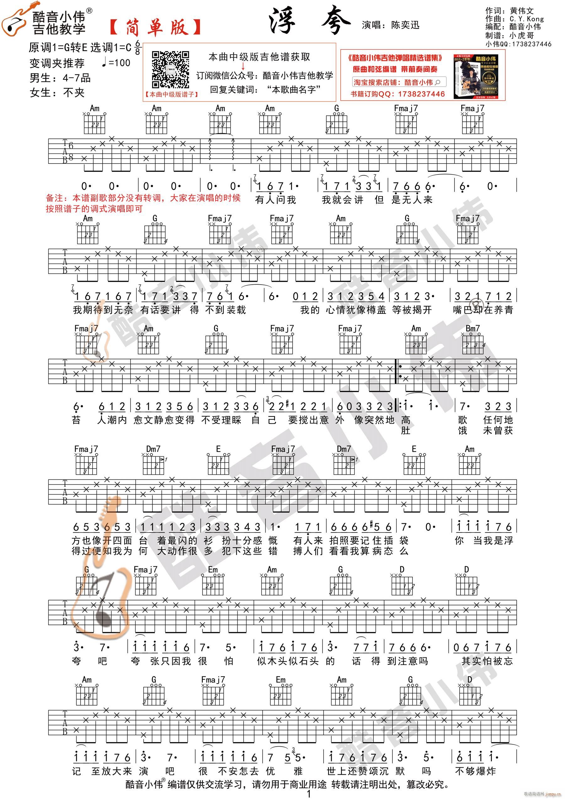 公众号:绵羊乐谱 《浮夸》 简单版 吉他弹唱教学免费弹唱吉他谱_六线谱/词曲:陈奕迅 点击: 1000 图片可能经过缩放,手机长按或点开后长按保存,电脑鼠标右键保存. (酷音小伟) 公众号:绵羊乐谱 | 官方QQ群:978773290 不吃独食,学会分享!本文链接:http://www.shaomingyang.com/btb/32704.html 转载请标明出处,尊重原创(๑╹◡╹)ノ。如信息有误或版权疑问,请通过网站底部联系我们会第一时间处理,感谢理解支持(◕ᴗ◕✿)!
