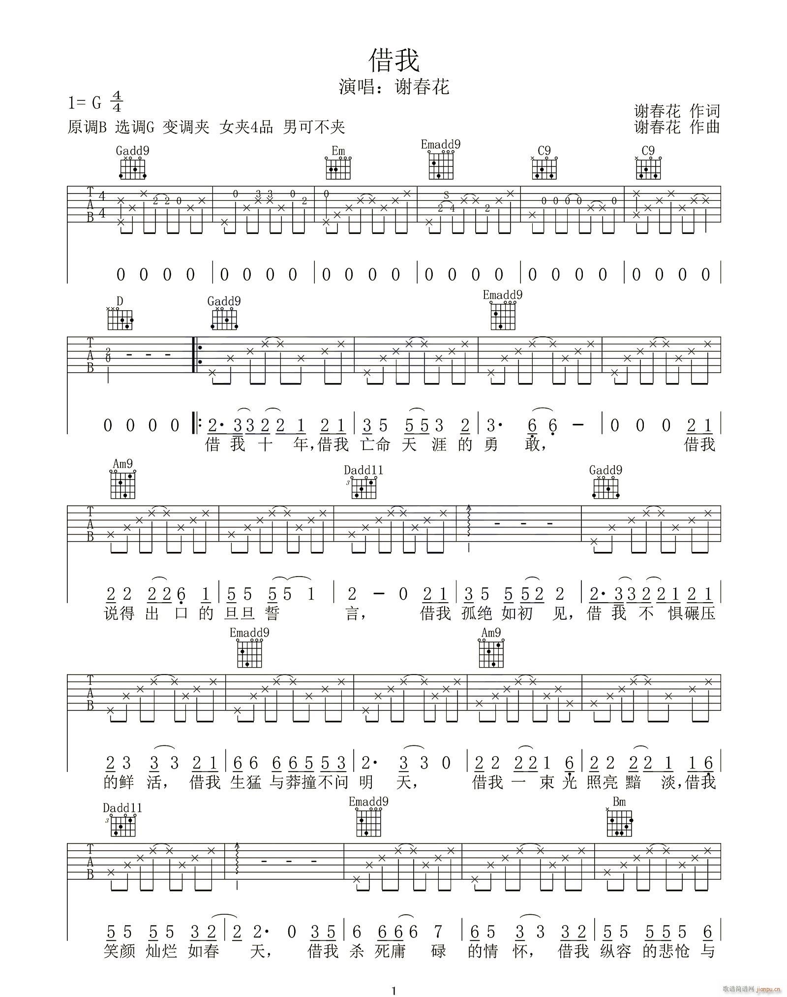 公众号:绵羊乐谱 借我 ( G调指法原版编配) 免费弹唱吉他谱_六线谱/词曲:谢春花 点击: (网络) 公众号:绵羊乐谱 | 官方QQ群:978773290 不吃独食,学会分享!本文链接:http://www.shaomingyang.com/btb/32768.html 转载请标明出处,尊重原创(๑╹◡╹)ノ。如信息有误或版权疑问,请通过网站底部联系我们会第一时间处理,感谢理解支持(◕ᴗ◕✿)!