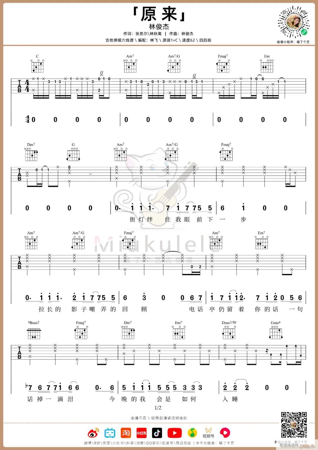 公众号:绵羊乐谱 原来 ( C调指法原版编配) 免费弹唱吉他谱_六线谱/词曲:林俊杰 点击: (喵了个艺) 公众号:绵羊乐谱 | 官方QQ群:978773290 不吃独食,学会分享!本文链接:http://www.shaomingyang.com/btb/32779.html 转载请标明出处,尊重原创(๑╹◡╹)ノ。如信息有误或版权疑问,请通过网站底部联系我们会第一时间处理,感谢理解支持(◕ᴗ◕✿)!