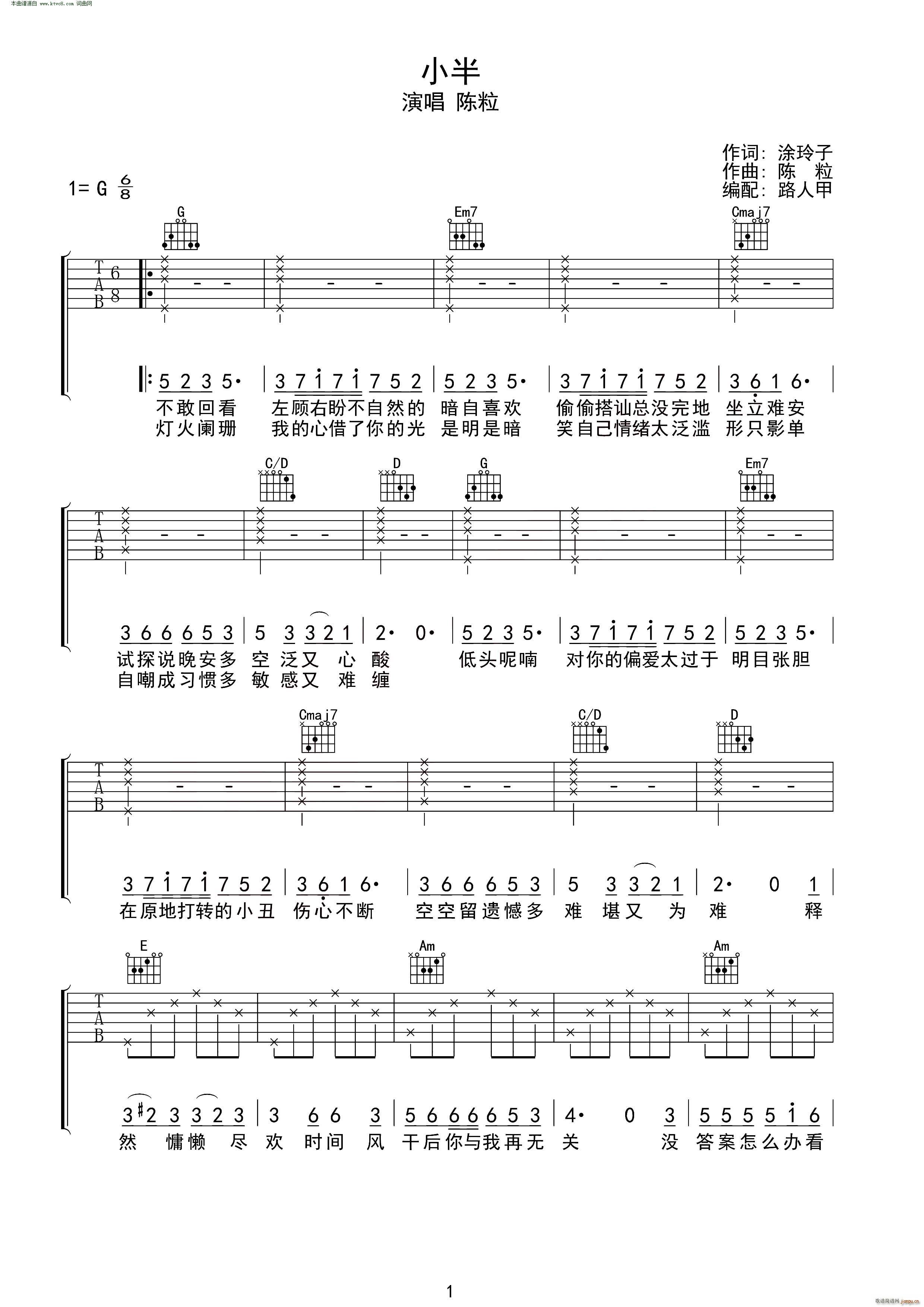 公众号:绵羊乐谱 小半( 编配 )免费弹唱吉他谱_六线谱/词曲:陈粒陈粒 涂玲子点击: 1000 图片可能经过缩放,手机长按或点开后长按保存,电脑鼠标右键保存. (无限延音) 公众号:绵羊乐谱 | 官方QQ群:978773290 不吃独食,学会分享!本文链接:http://www.shaomingyang.com/btb/32781.html 转载请标明出处,尊重原创(๑╹◡╹)ノ。如信息有误或版权疑问,请通过网站底部联系我们会第一时间处理,感谢理解支持(◕ᴗ◕✿)!