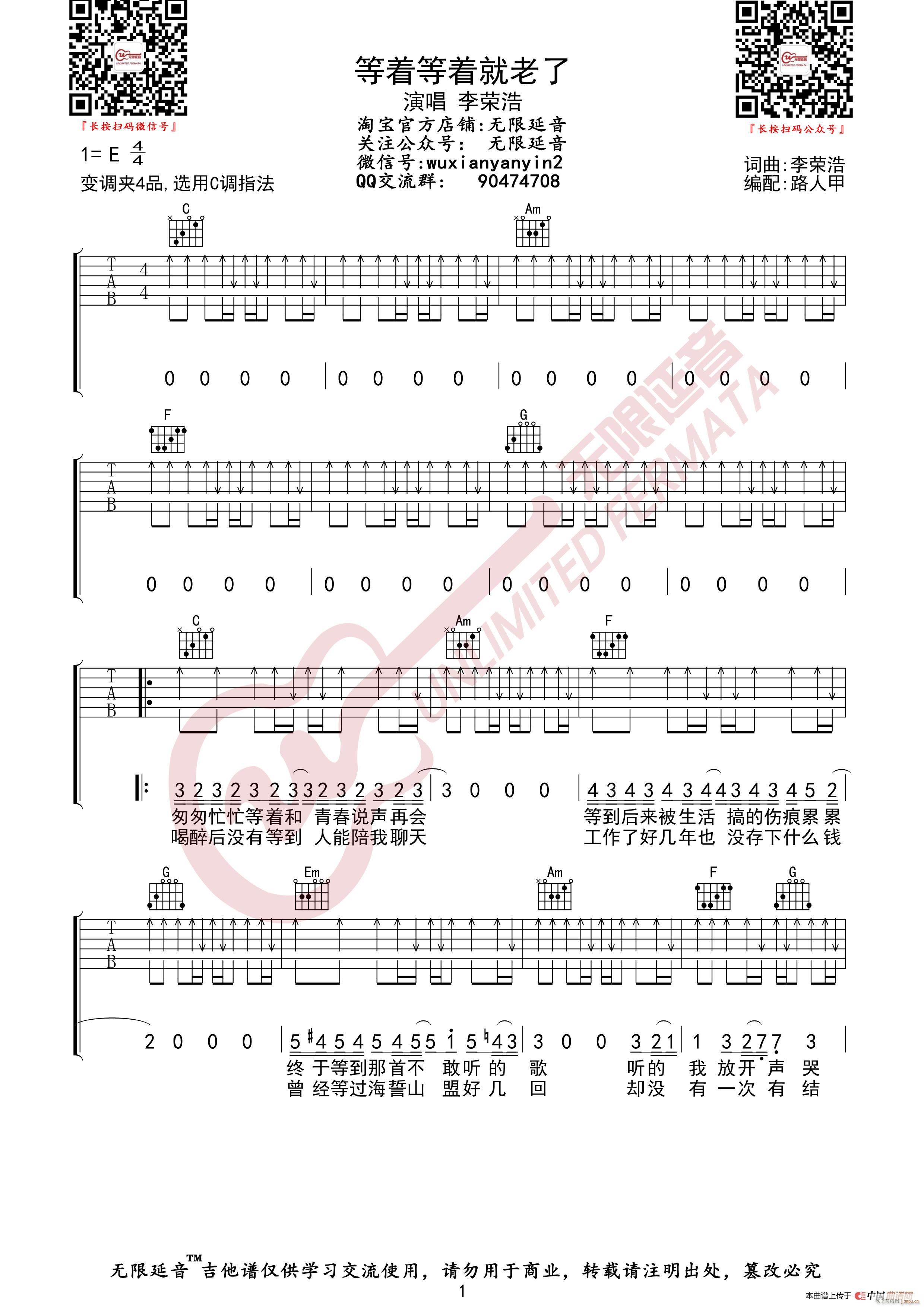 公众号:绵羊乐谱 李荣浩 等着等着就老了 (无限延音编配) 免费弹唱吉他谱_六线谱/词曲: 点击: (网络) 公众号:绵羊乐谱 | 官方QQ群:978773290 不吃独食,学会分享!本文链接:http://www.shaomingyang.com/btb/32803.html 转载请标明出处,尊重原创(๑╹◡╹)ノ。如信息有误或版权疑问,请通过网站底部联系我们会第一时间处理,感谢理解支持(◕ᴗ◕✿)!