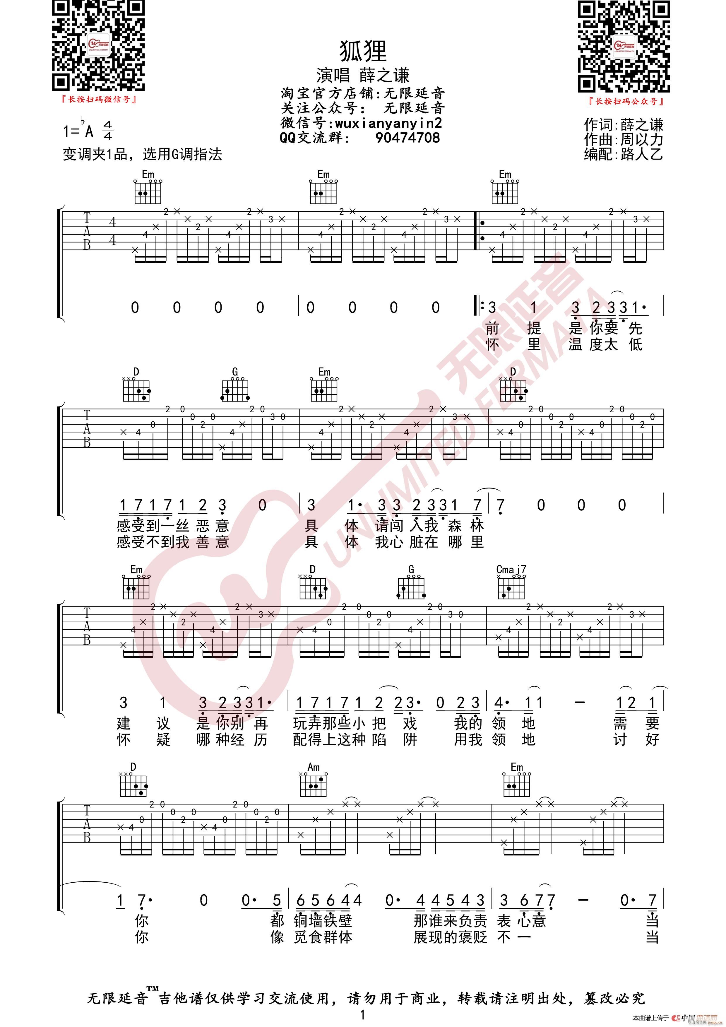 公众号:绵羊乐谱 薛之谦 狐狸 (无限延音编配) 免费弹唱吉他谱_六线谱/词曲: 点击: (网络) 公众号:绵羊乐谱 | 官方QQ群:978773290 不吃独食,学会分享!本文链接:http://www.shaomingyang.com/btb/32805.html 转载请标明出处,尊重原创(๑╹◡╹)ノ。如信息有误或版权疑问,请通过网站底部联系我们会第一时间处理,感谢理解支持(◕ᴗ◕✿)!
