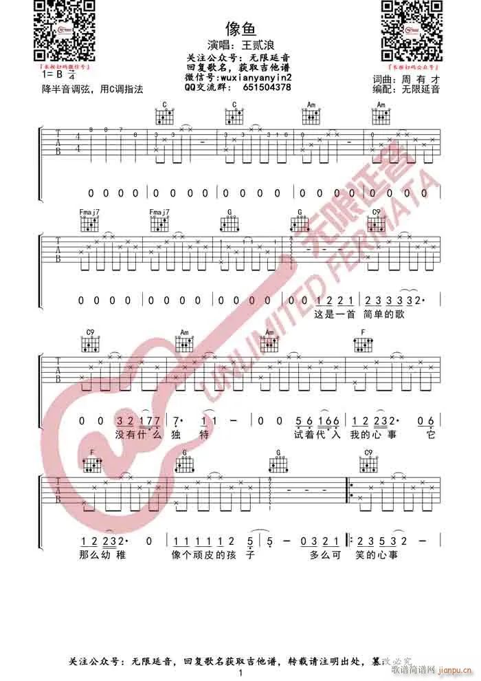 公众号:绵羊乐谱 像鱼 ( C调指法原版编配) 免费弹唱吉他谱_六线谱/词曲:王贰浪 点击: (无限延音) 公众号:绵羊乐谱 | 官方QQ群:978773290 不吃独食,学会分享!本文链接:http://www.shaomingyang.com/btb/32915.html 转载请标明出处,尊重原创(๑╹◡╹)ノ。如信息有误或版权疑问,请通过网站底部联系我们会第一时间处理,感谢理解支持(◕ᴗ◕✿)!