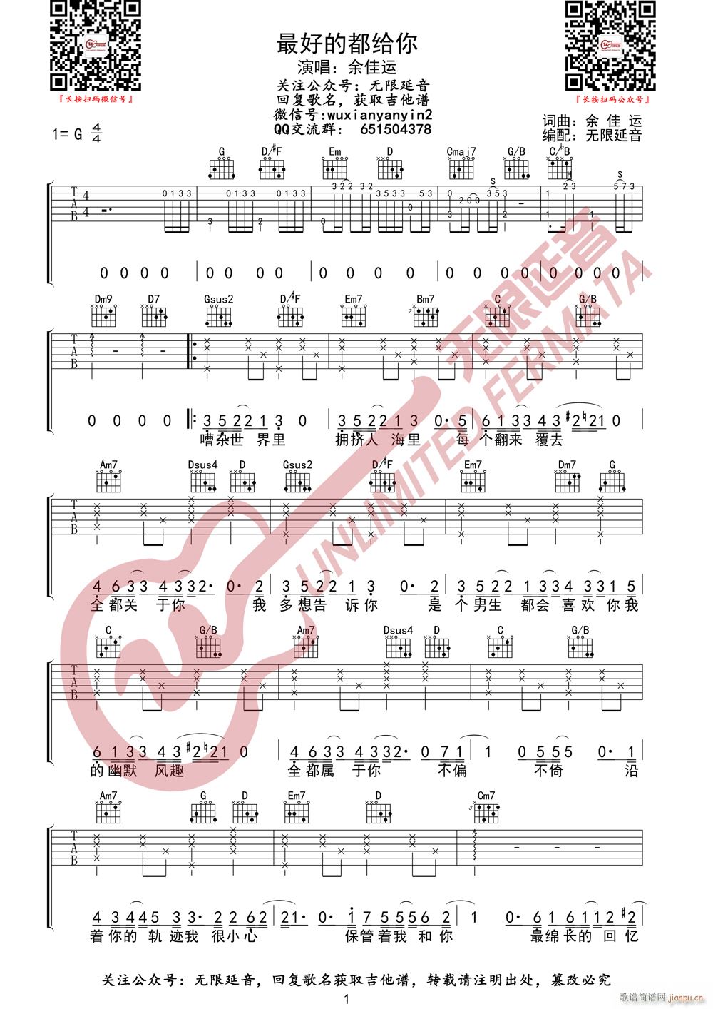 公众号:绵羊乐谱 余佳运 最好的都给你 (无限延音编配) 免费弹唱吉他谱_六线谱/词曲: 点击: (网络) 公众号:绵羊乐谱 | 官方QQ群:978773290 不吃独食,学会分享!本文链接:http://www.shaomingyang.com/btb/32918.html 转载请标明出处,尊重原创(๑╹◡╹)ノ。如信息有误或版权疑问,请通过网站底部联系我们会第一时间处理,感谢理解支持(◕ᴗ◕✿)!