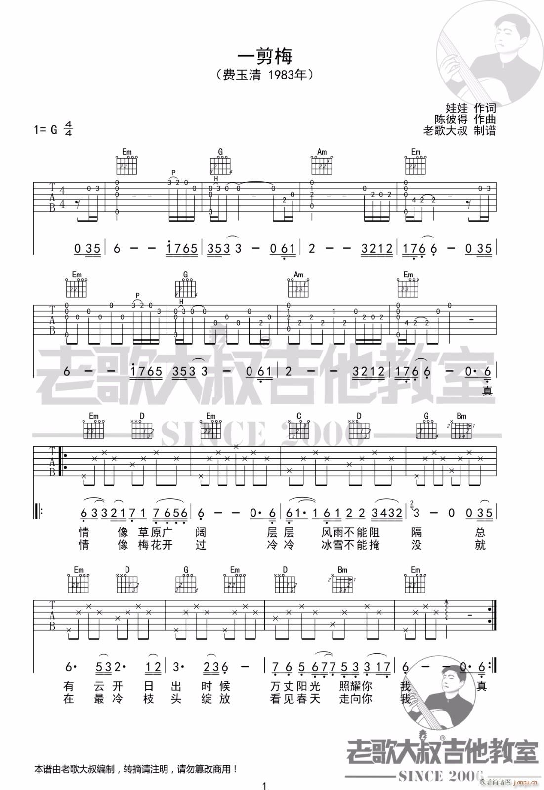 公众号:绵羊乐谱 一剪梅 ( G调指法原版编配) 免费弹唱吉他谱_六线谱/词曲:费玉清 点击: (老歌大叔) 公众号:绵羊乐谱 | 官方QQ群:978773290 不吃独食,学会分享!本文链接:http://www.shaomingyang.com/btb/32924.html 转载请标明出处,尊重原创(๑╹◡╹)ノ。如信息有误或版权疑问,请通过网站底部联系我们会第一时间处理,感谢理解支持(◕ᴗ◕✿)!