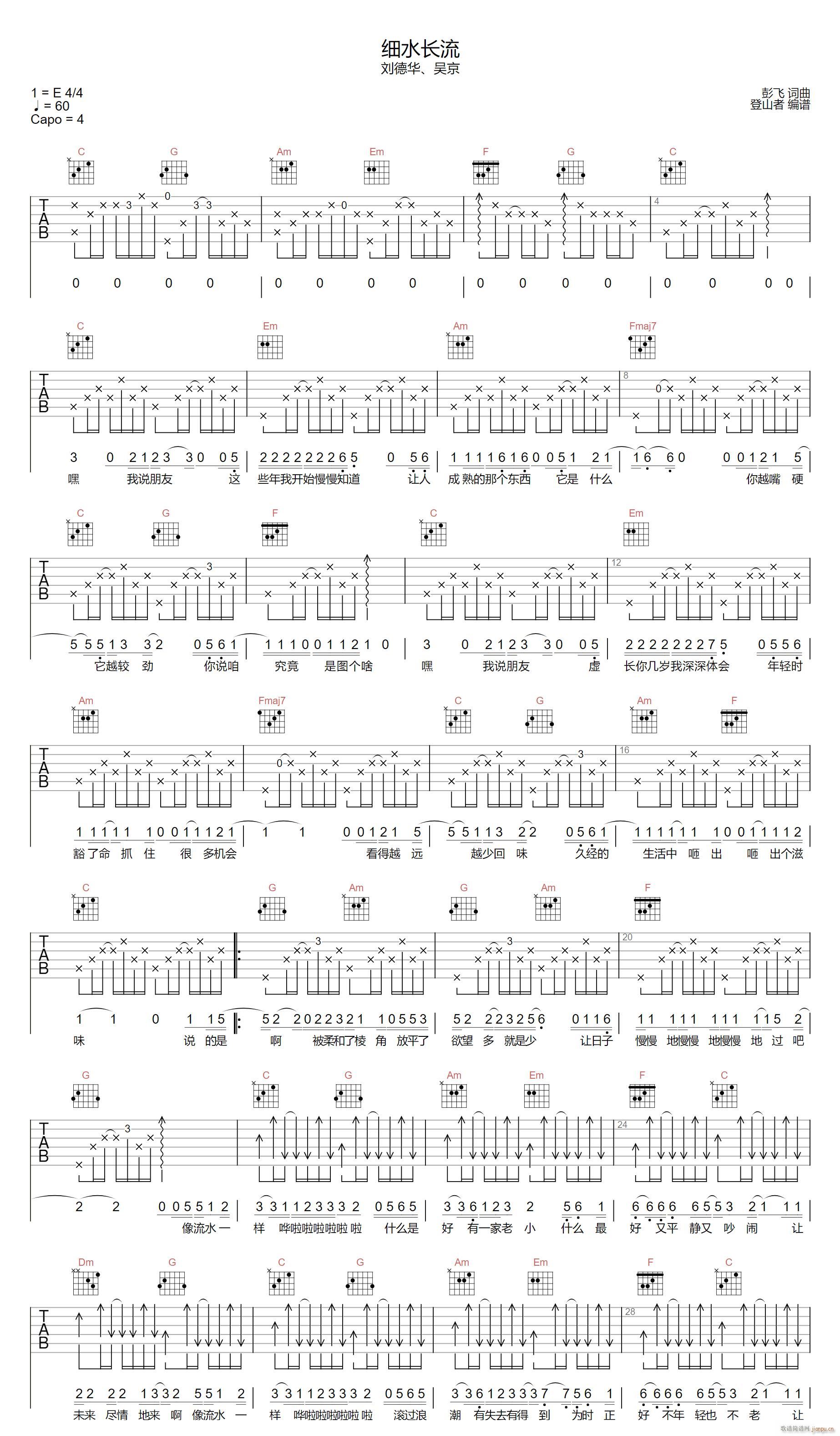 公众号:绵羊乐谱 细水长流 ( 吴京 C调原版编配) 免费弹唱吉他谱_六线谱/词曲:刘德华 点击: (登山者) 公众号:绵羊乐谱 | 官方QQ群:978773290 不吃独食,学会分享!本文链接:http://www.shaomingyang.com/btb/32938.html 转载请标明出处,尊重原创(๑╹◡╹)ノ。如信息有误或版权疑问,请通过网站底部联系我们会第一时间处理,感谢理解支持(◕ᴗ◕✿)!