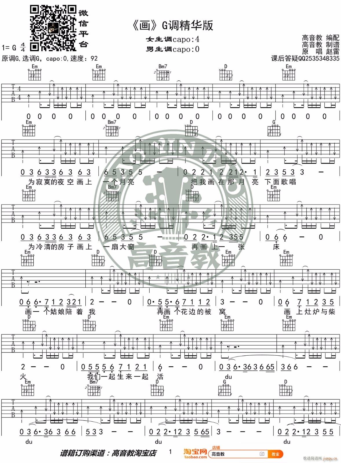 公众号:绵羊乐谱 画 ( G调指法扫弦版) 免费弹唱吉他谱_六线谱/词曲:赵雷 点击: (高音教) 公众号:绵羊乐谱 | 官方QQ群:978773290 不吃独食,学会分享!本文链接:http://www.shaomingyang.com/btb/32943.html 转载请标明出处,尊重原创(๑╹◡╹)ノ。如信息有误或版权疑问,请通过网站底部联系我们会第一时间处理,感谢理解支持(◕ᴗ◕✿)!