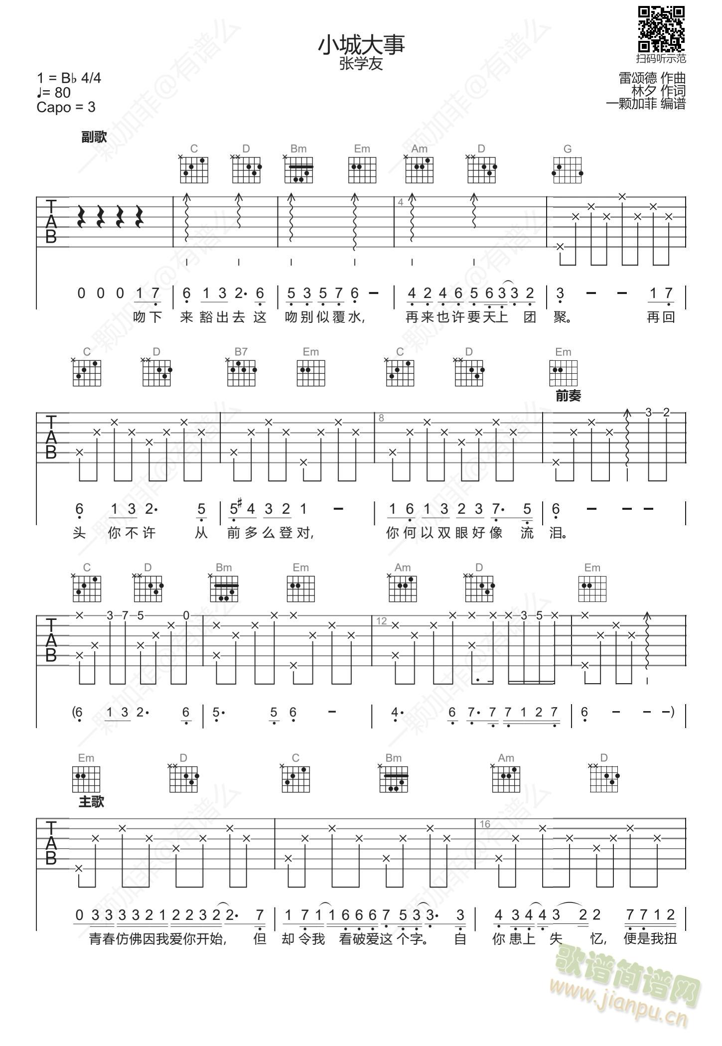 公众号:绵羊乐谱 小城大事 免费弹唱吉他谱_六线谱/词曲:张学友 点击: (网络) 公众号:绵羊乐谱 | 官方QQ群:978773290 不吃独食,学会分享!本文链接:http://www.shaomingyang.com/btb/32977.html 转载请标明出处,尊重原创(๑╹◡╹)ノ。如信息有误或版权疑问,请通过网站底部联系我们会第一时间处理,感谢理解支持(◕ᴗ◕✿)!