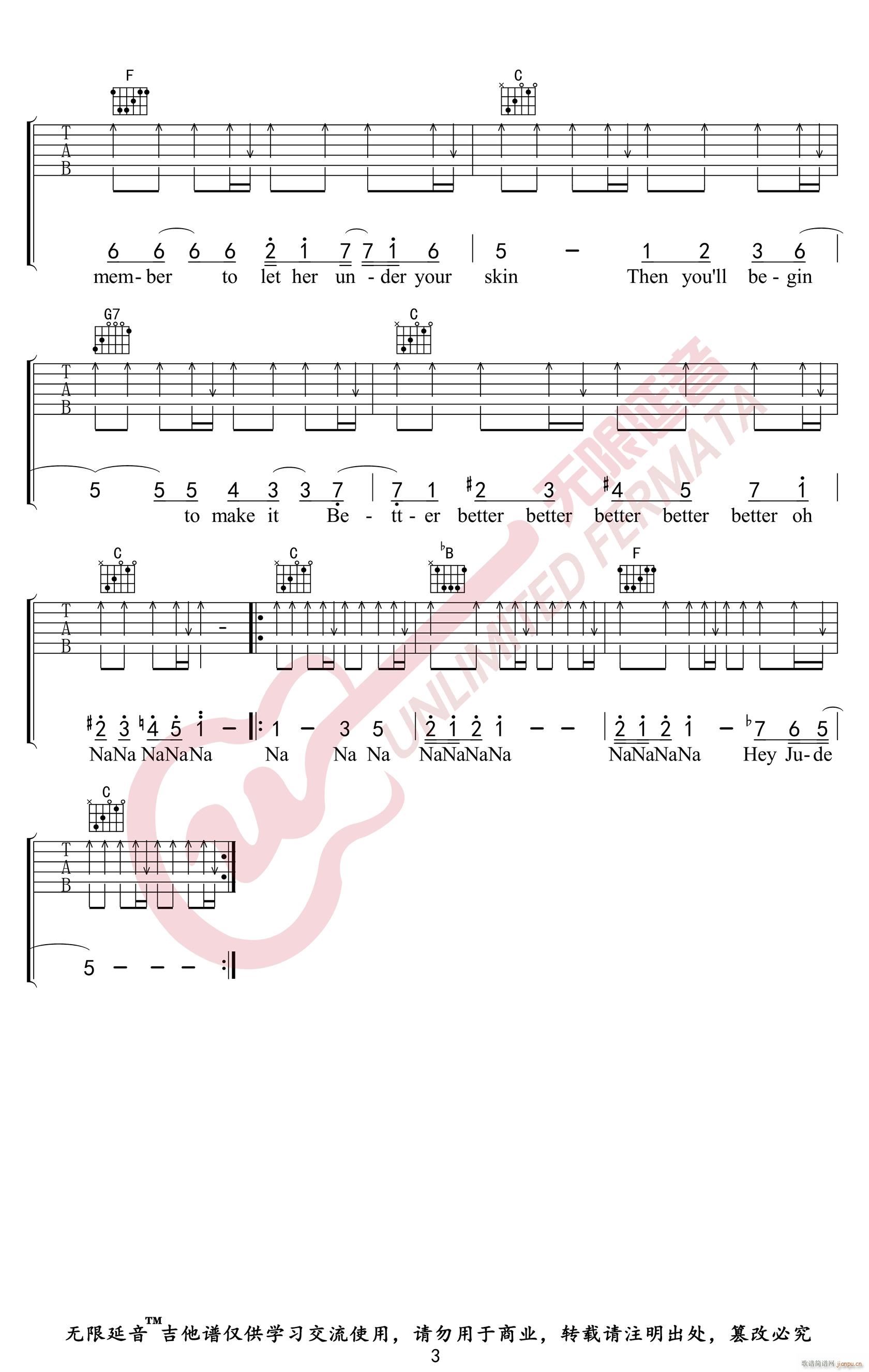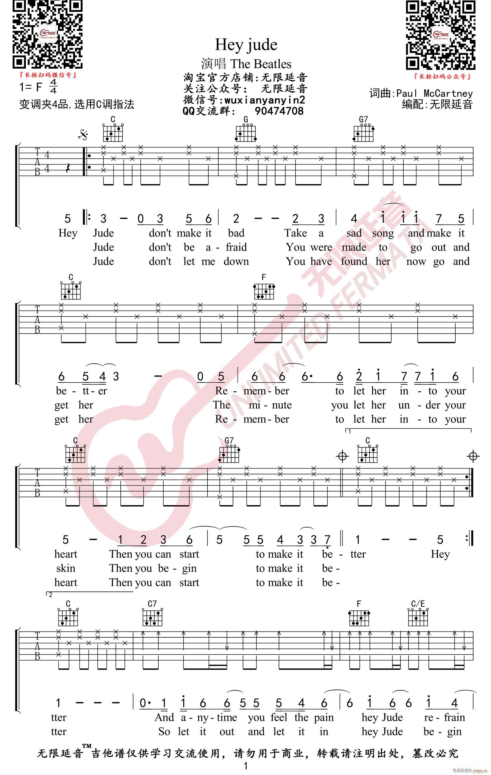 公众号:绵羊乐谱 Hey-Jude ( C调指法编配) 免费弹唱吉他谱_六线谱/词曲:The Beatles 点击: (无限延音) 公众号:绵羊乐谱 | 官方QQ群:978773290 不吃独食,学会分享!本文链接:http://www.shaomingyang.com/btb/33035.html 转载请标明出处,尊重原创(๑╹◡╹)ノ。如信息有误或版权疑问,请通过网站底部联系我们会第一时间处理,感谢理解支持(◕ᴗ◕✿)!