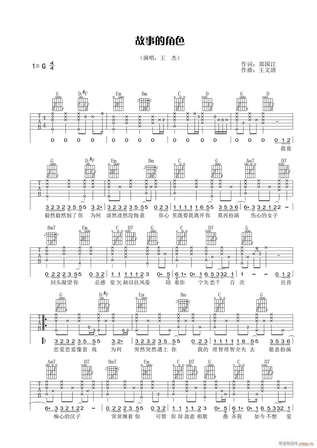 公众号:绵羊乐谱 故事的角色 ( G调指法原版编配) 免费弹唱吉他谱_六线谱/词曲:王杰 点击: (网络) 公众号:绵羊乐谱 | 官方QQ群:978773290 不吃独食,学会分享!本文链接:http://www.shaomingyang.com/btb/33046.html 转载请标明出处,尊重原创(๑╹◡╹)ノ。如信息有误或版权疑问,请通过网站底部联系我们会第一时间处理,感谢理解支持(◕ᴗ◕✿)!