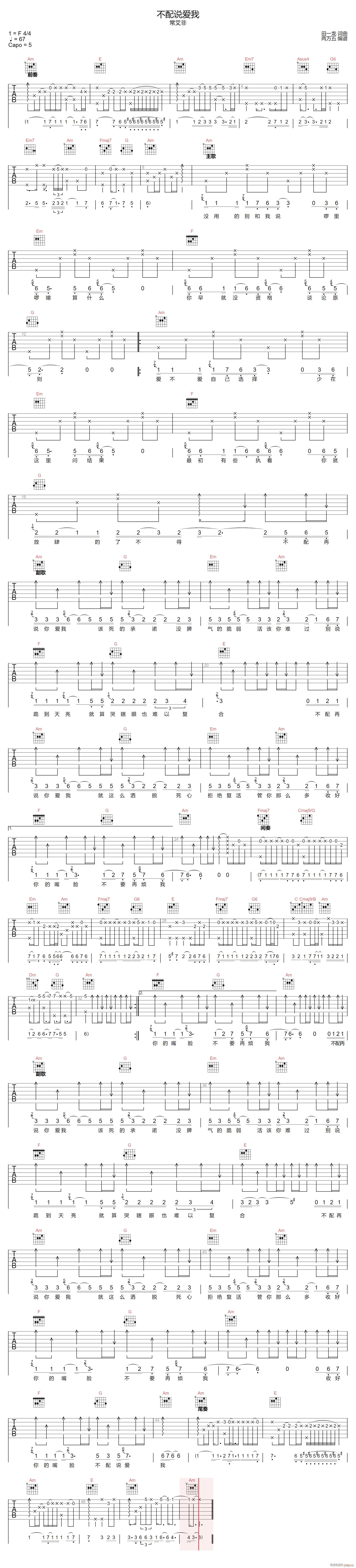 公众号:绵羊乐谱 不配说爱我 ( C调原版编配) 免费弹唱吉他谱_六线谱/词曲:常艾非 点击: (两万五) 公众号:绵羊乐谱 | 官方QQ群:978773290 不吃独食,学会分享!本文链接:http://www.shaomingyang.com/btb/33118.html 转载请标明出处,尊重原创(๑╹◡╹)ノ。如信息有误或版权疑问,请通过网站底部联系我们会第一时间处理,感谢理解支持(◕ᴗ◕✿)!