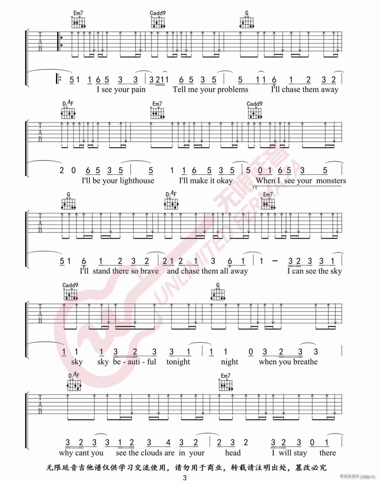 公众号:绵羊乐谱 Monsters ( G调原版编配) 免费弹唱吉他谱_六线谱/词曲:Katie Sky 点击: (无限延音) 公众号:绵羊乐谱 | 官方QQ群:978773290 不吃独食,学会分享!本文链接:http://www.shaomingyang.com/btb/33124.html 转载请标明出处,尊重原创(๑╹◡╹)ノ。如信息有误或版权疑问,请通过网站底部联系我们会第一时间处理,感谢理解支持(◕ᴗ◕✿)!