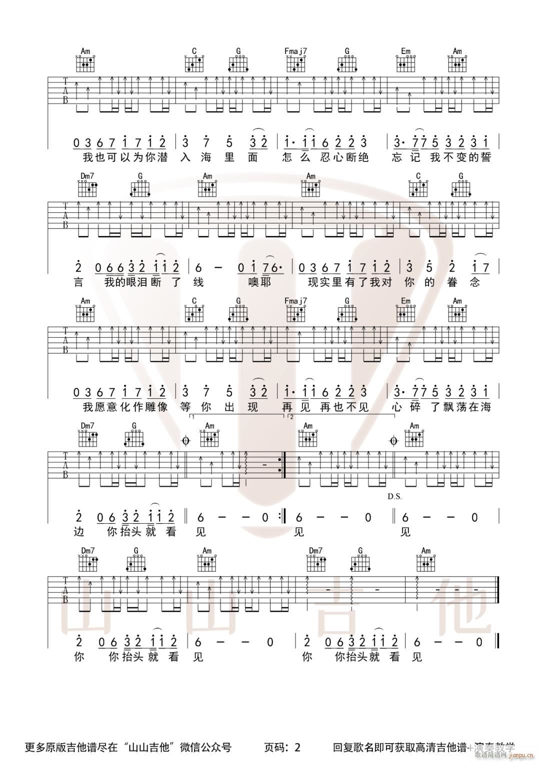 公众号:绵羊乐谱 美人鱼 ( C调原版编配)免费弹唱吉他谱_六线谱/词曲:林俊杰 点击: 1000 图片可能经过缩放,手机长按或点开后长按保存,电脑鼠标右键保存. (山山吉他) 公众号:绵羊乐谱 | 官方QQ群:978773290 不吃独食,学会分享!本文链接:http://www.shaomingyang.com/btb/33139.html 转载请标明出处,尊重原创(๑╹◡╹)ノ。如信息有误或版权疑问,请通过网站底部联系我们会第一时间处理,感谢理解支持(◕ᴗ◕✿)!