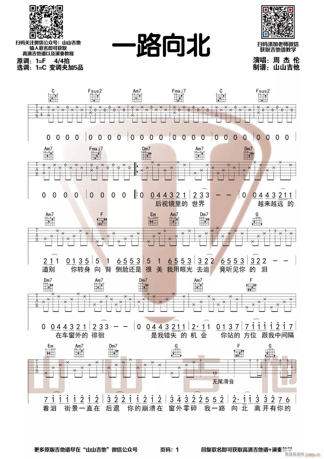 公众号:绵羊乐谱 一路向北 ( C调指法编配) 免费弹唱吉他谱_六线谱/词曲:周杰伦 点击: (山山吉他) 公众号:绵羊乐谱 | 官方QQ群:978773290 不吃独食,学会分享!本文链接:http://www.shaomingyang.com/btb/33140.html 转载请标明出处,尊重原创(๑╹◡╹)ノ。如信息有误或版权疑问,请通过网站底部联系我们会第一时间处理,感谢理解支持(◕ᴗ◕✿)!
