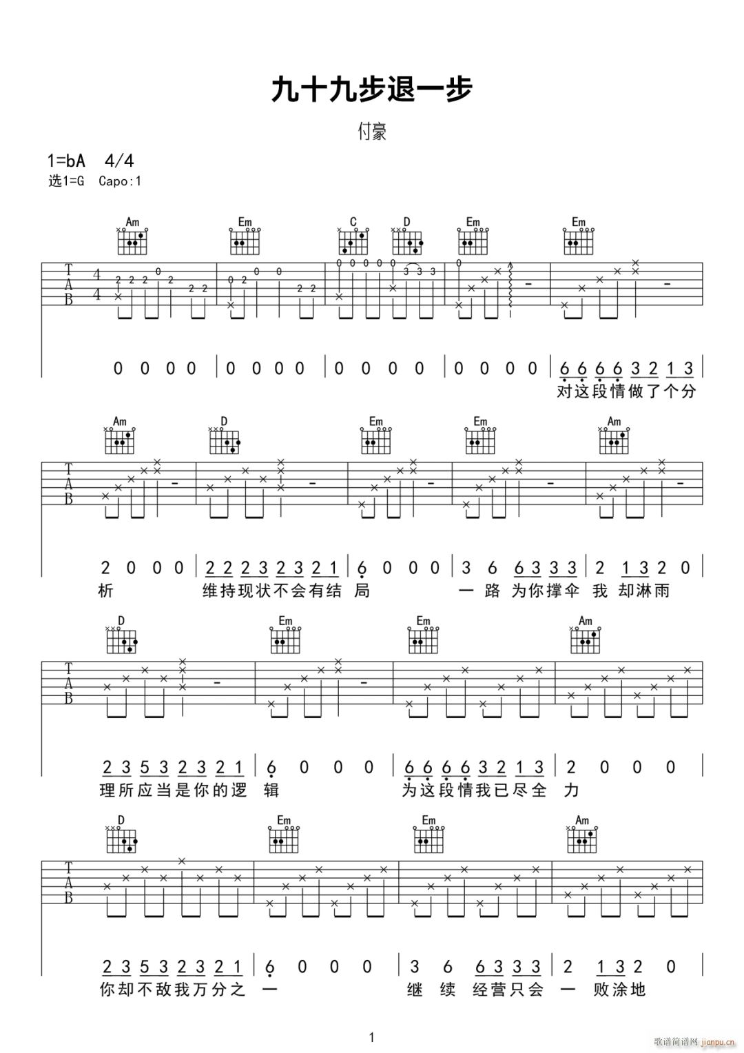 公众号:绵羊乐谱 九十九步退一步 ( G调原版编配) 免费弹唱吉他谱_六线谱/词曲:付豪 点击: (网络) 公众号:绵羊乐谱 | 官方QQ群:978773290 不吃独食,学会分享!本文链接:http://www.shaomingyang.com/btb/33148.html 转载请标明出处,尊重原创(๑╹◡╹)ノ。如信息有误或版权疑问,请通过网站底部联系我们会第一时间处理,感谢理解支持(◕ᴗ◕✿)!
